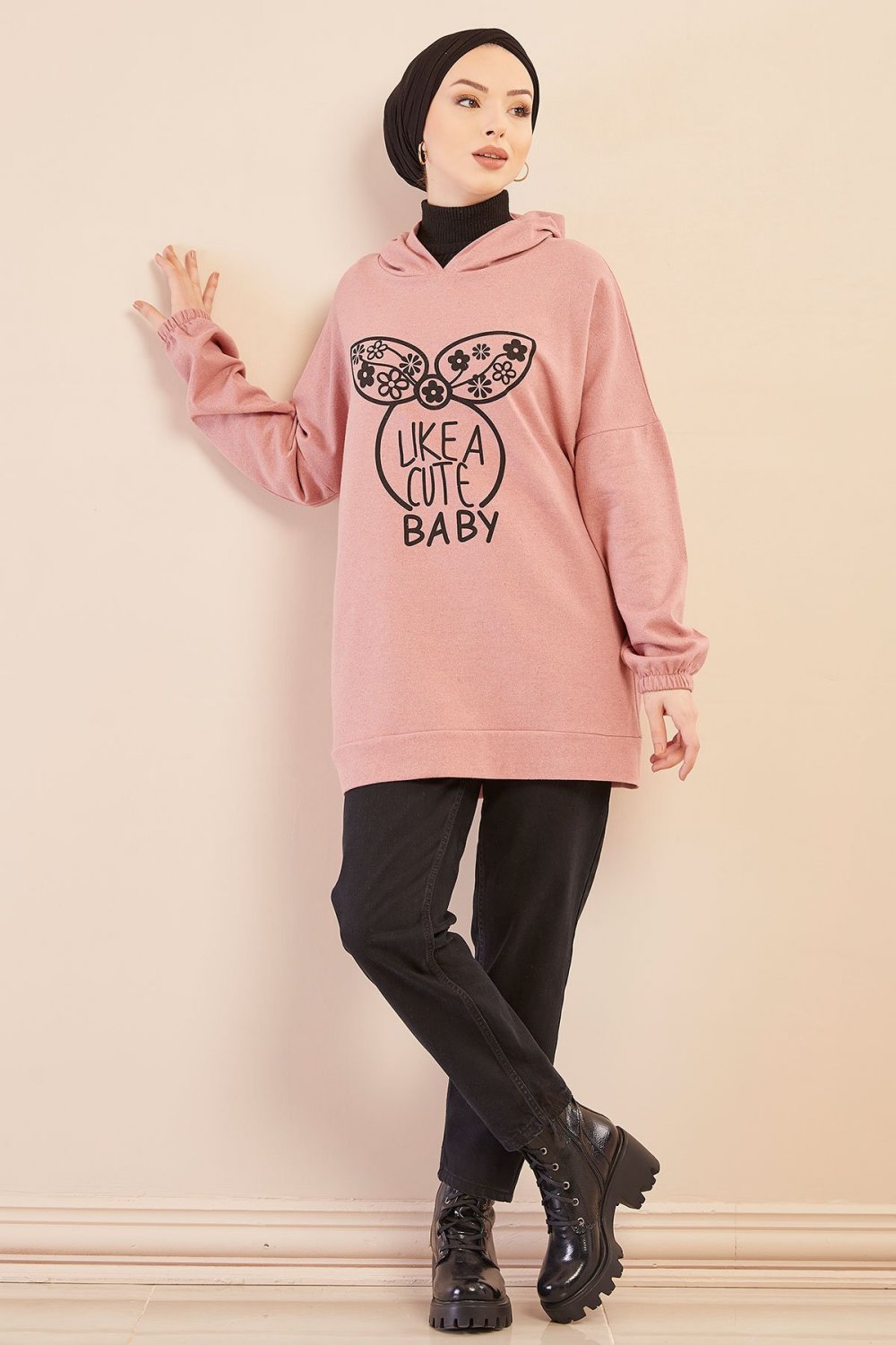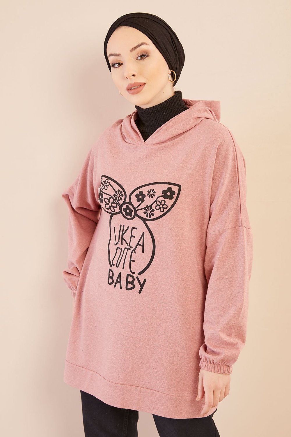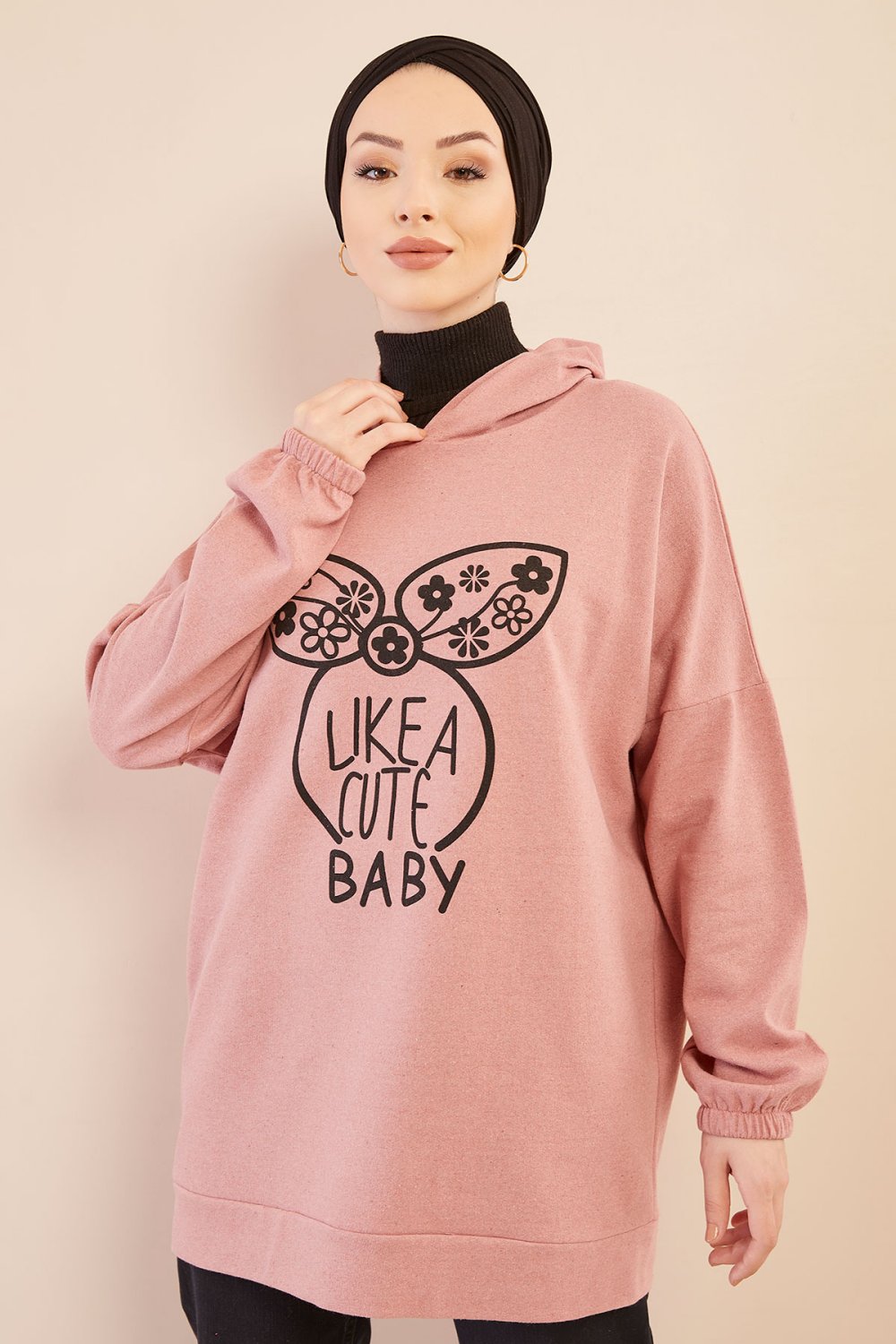 Tunique avec capuche imprimé "Like a cute baby" (Style Moderne) - Couleur rose poudré Vetement & Accessoire