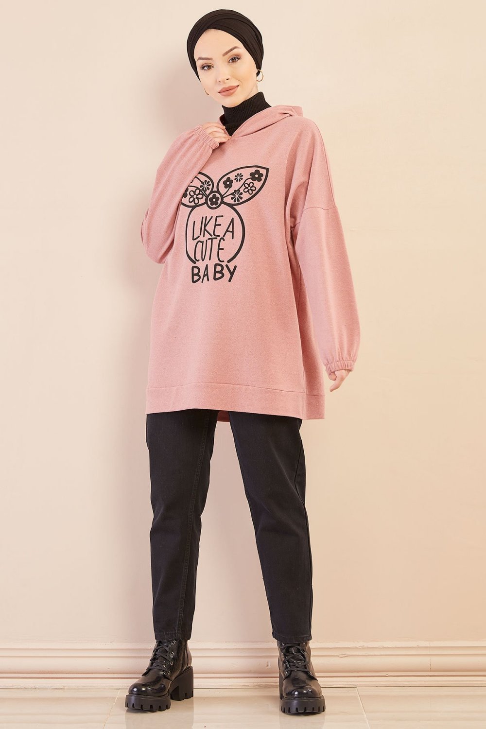 Tunique avec capuche imprime "Like a cute baby" (Style Moderne) - Couleur rose poudre