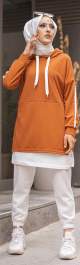 Sweat-Tunique sport bi-colore pour femme voilée - Couleur blanc et rouille - REF. 30510 (19.90 €)