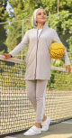 Ensemble survêtement 2 pièces (Haut à capuche et bas et jogger) pour femme voilée - Couleur blanc et Camel - REF. 32948 (28.00 €)