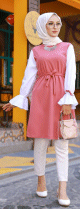 Tunique à volants (Vetement Hijab pour femme voilée) - Couleur framboise et blanc - REF. 33102 (19.90 €)