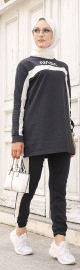 Survêtement femme deux pièces (Tenue moderne pour hijab) - Couleur gris foncé et blanc - REF. 35628 (25.00 €)