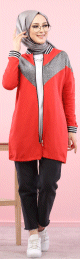Veste argentée pour femme - Tunique zippée style sportswear (Mode Musulmane) - Couleur rouge - REF. 34704 (25.00 €)