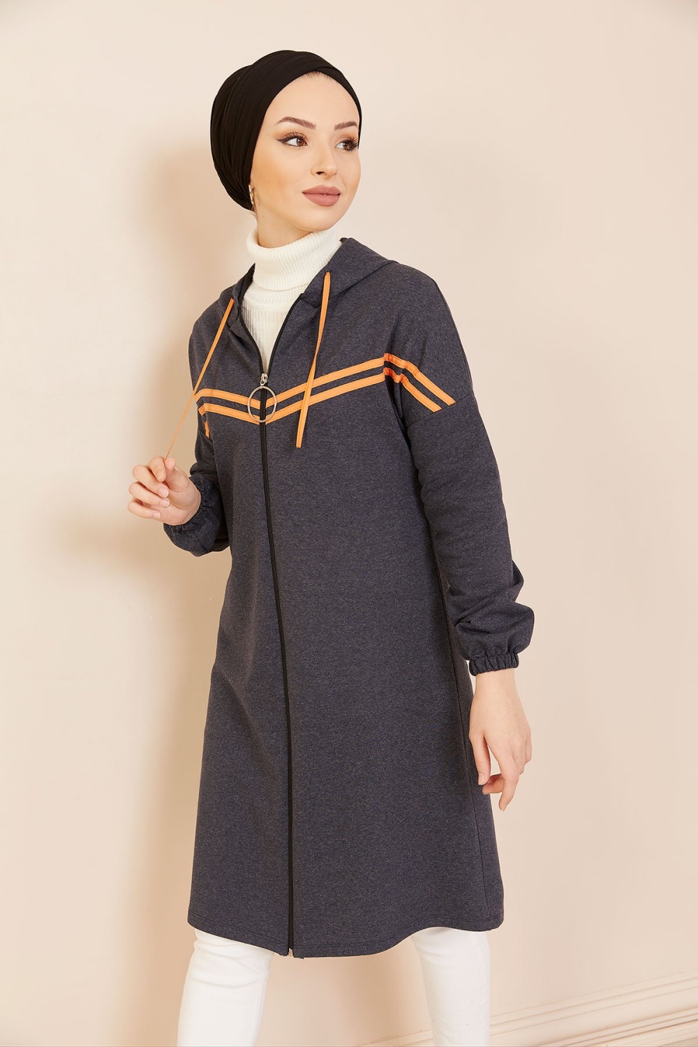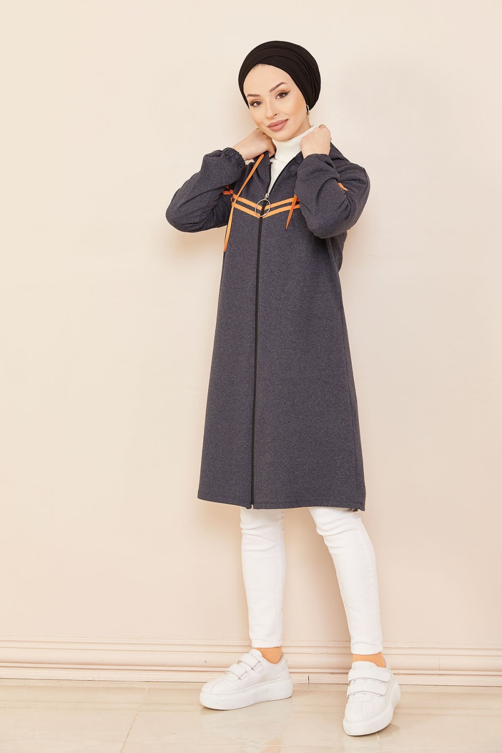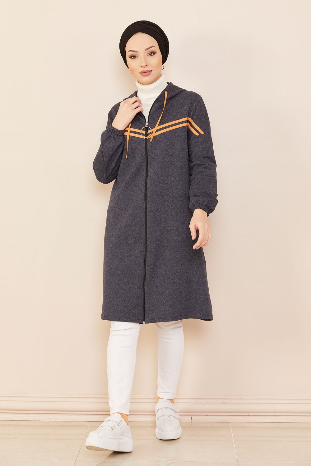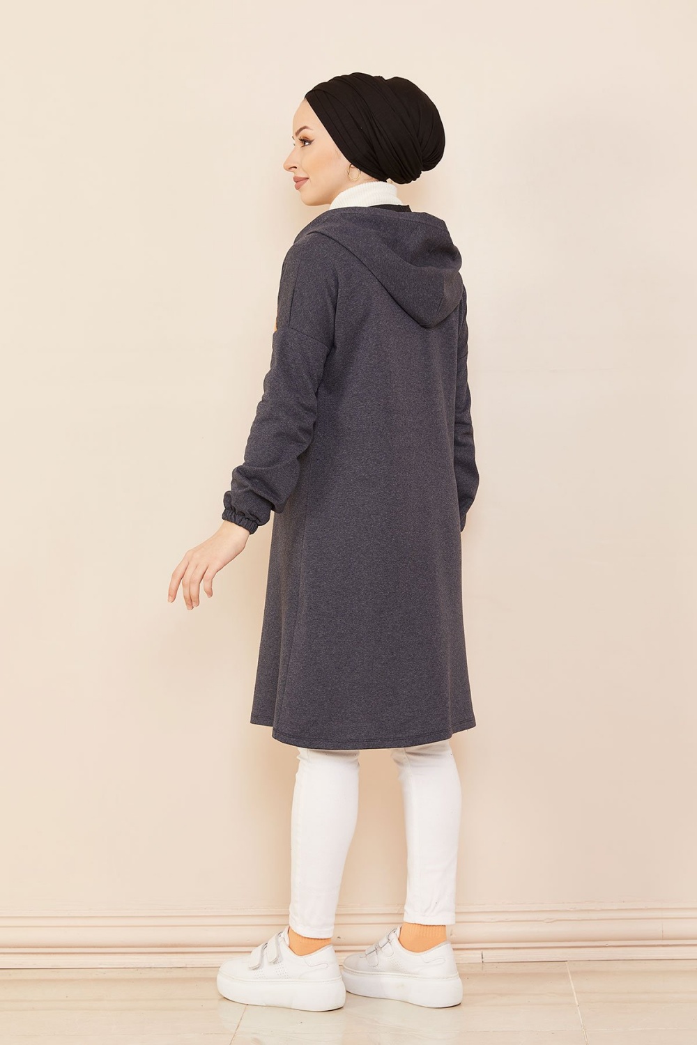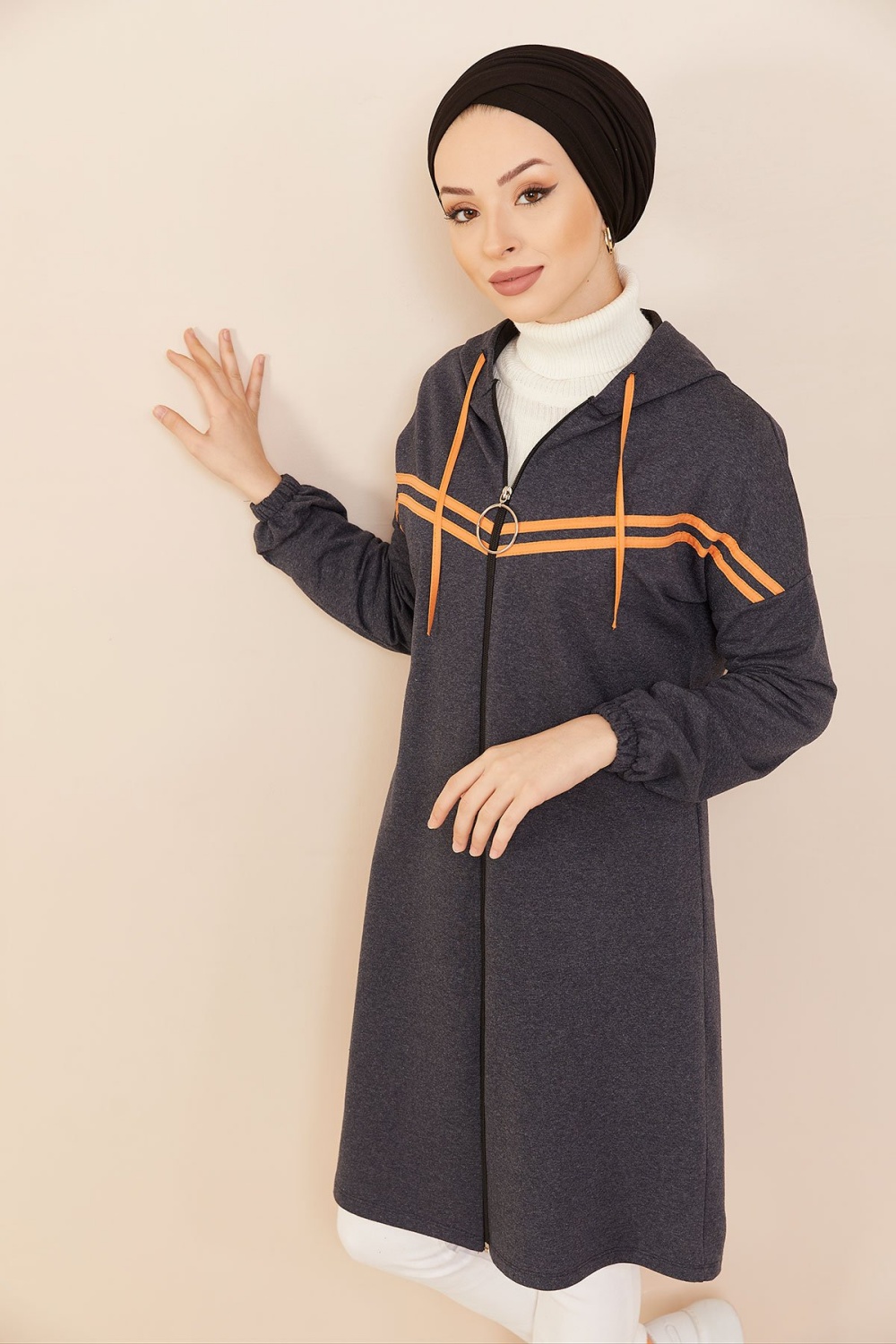 Cardigan Sweat zippé long argenté style moderne - Tenue de Sport longue et décontractée pour femme - Couleur noir - REF. 33798 (29.90 €)