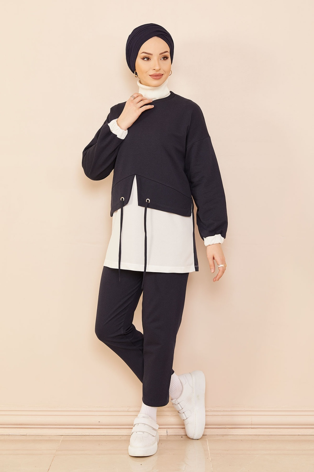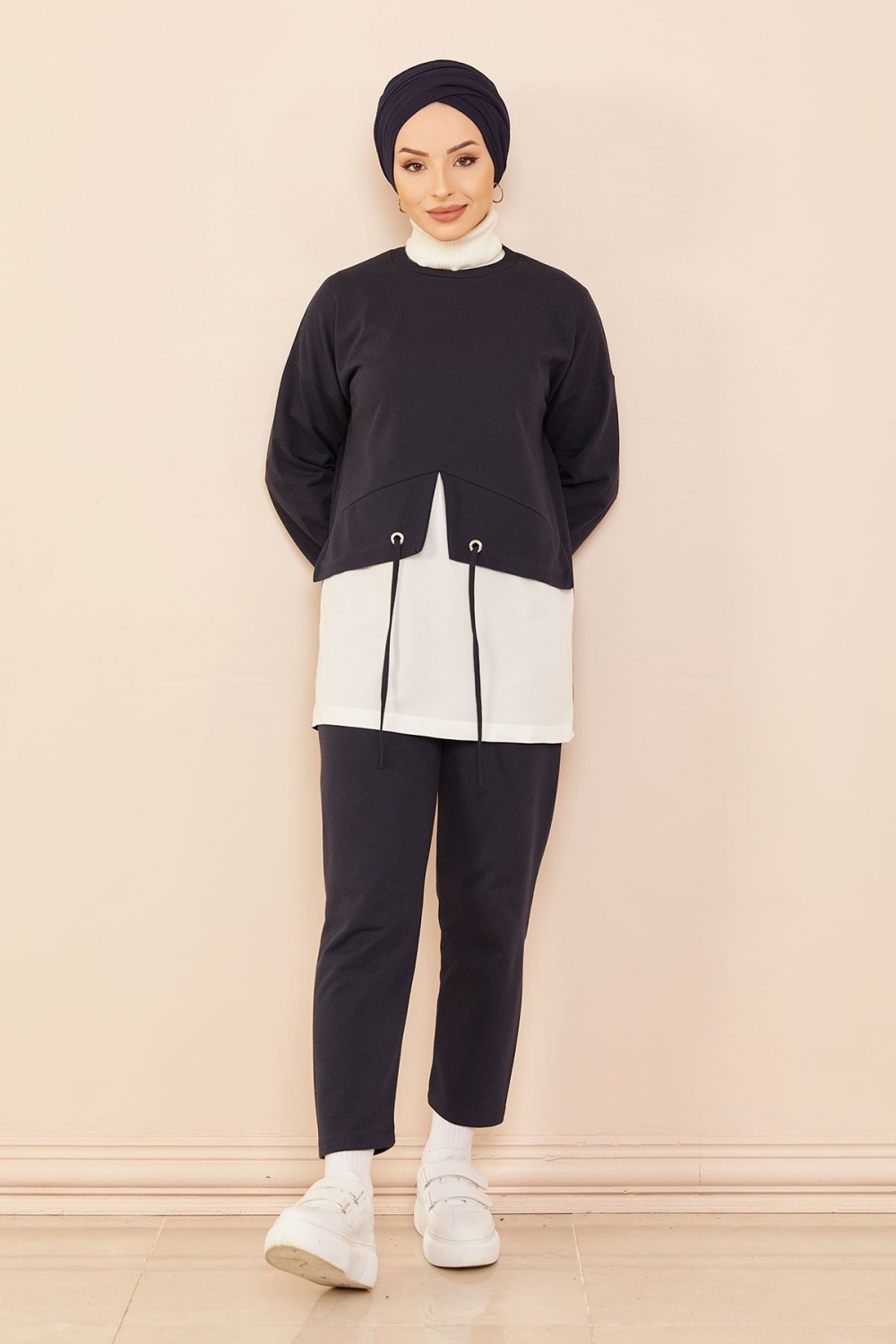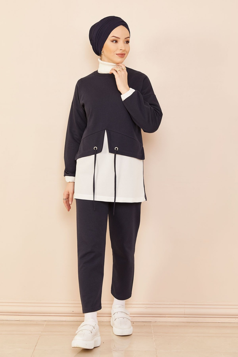 Survêtement avec extension blanche - Sweat à capuche imprimé et pantalon (Boutique de vêtement Chic pour femme voilée) - Couleur bleu marine - REF. 35676 (29.90 €)