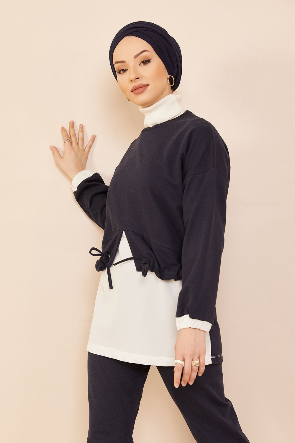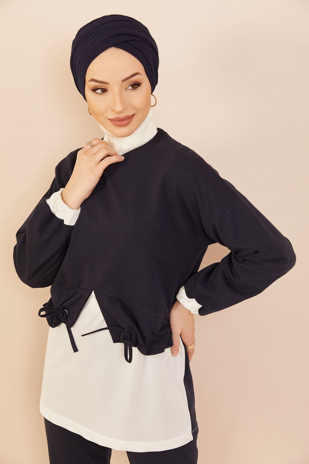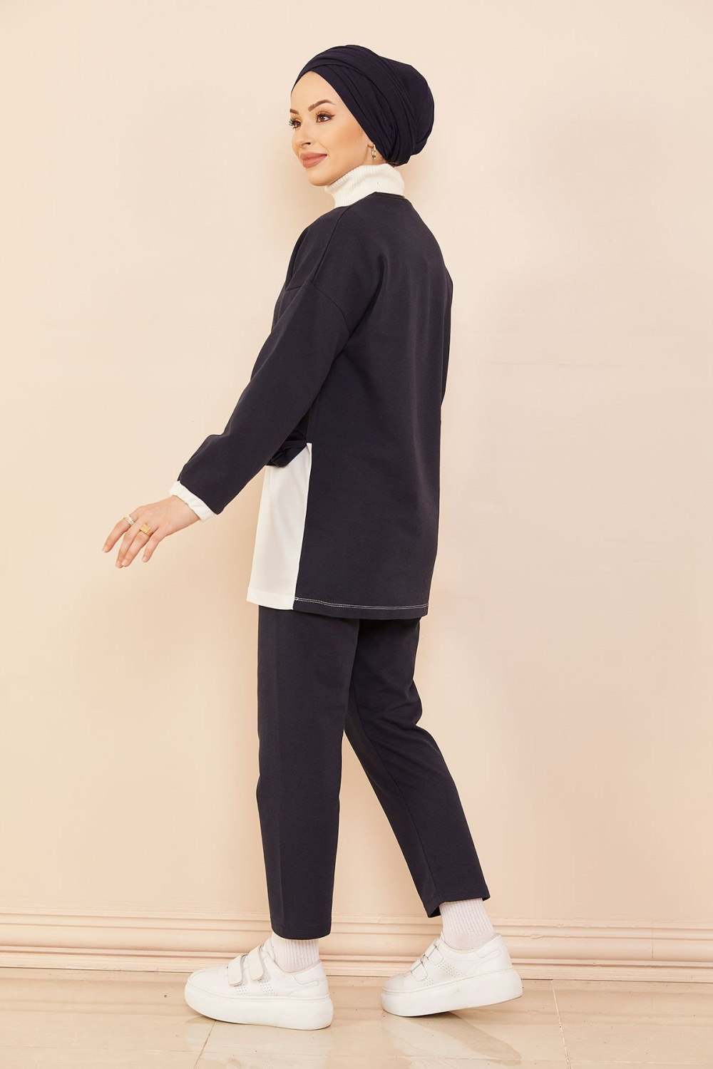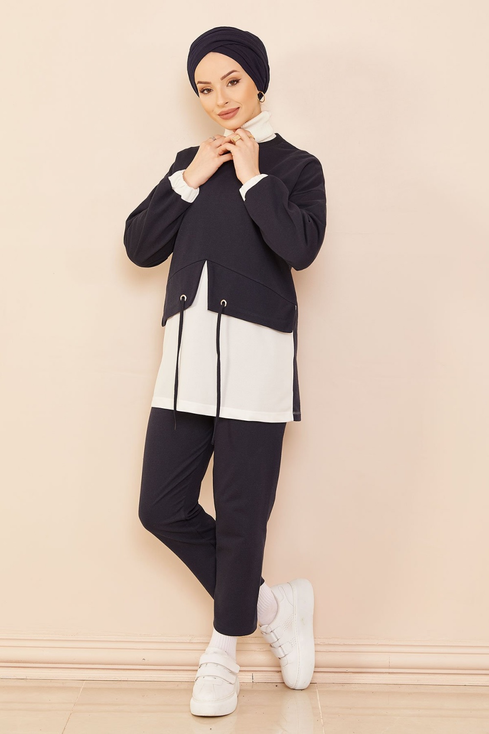 Survêtement avec extension blanche - Sweat à capuche imprimé et pantalon (Boutique de vêtement Chic pour femme voilée) - Couleur bleu marine - REF. 35676 (29.90 €)