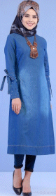 Tunique longue en jean foncé et délavé (Vetement tendance pour femme musulmane voilée) - REF. 30511 (38.00 €)