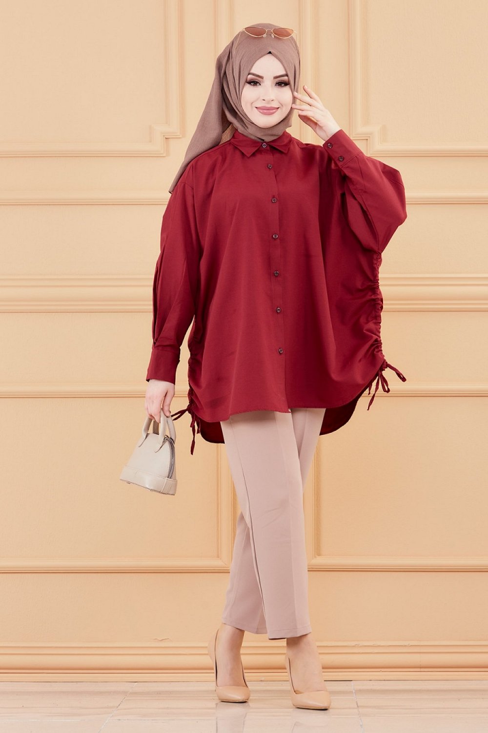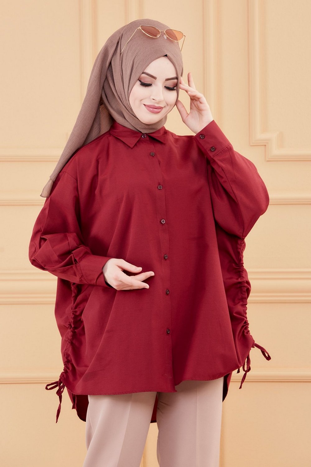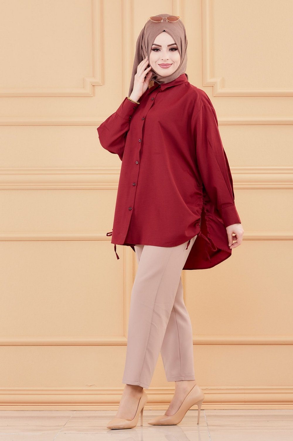 Chemise-Tunique fendue style habille pour femme (Vetement chic pour hijab) - Couleur bordeaux
