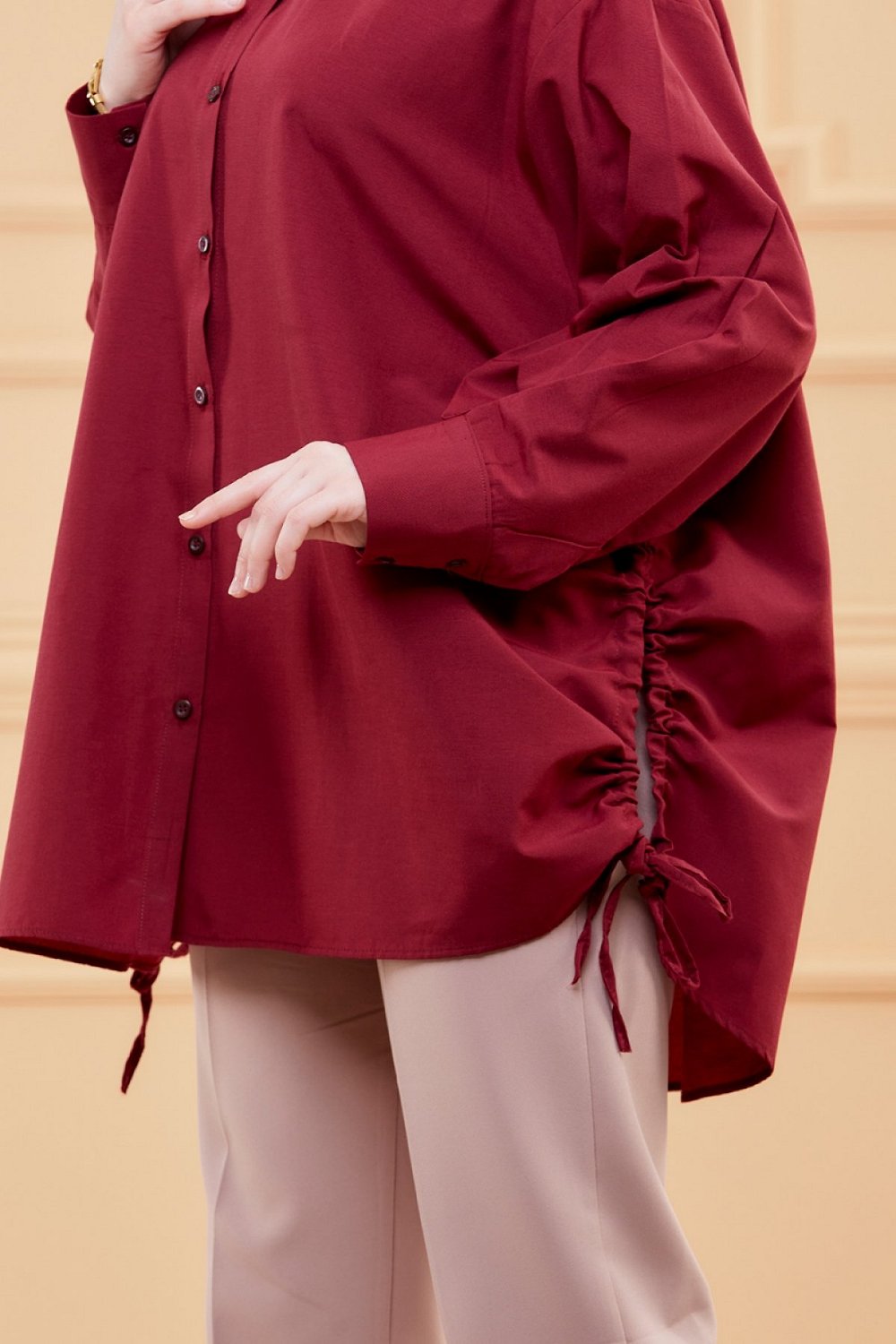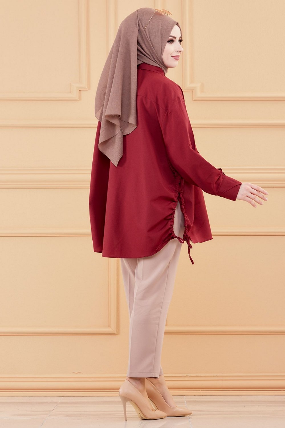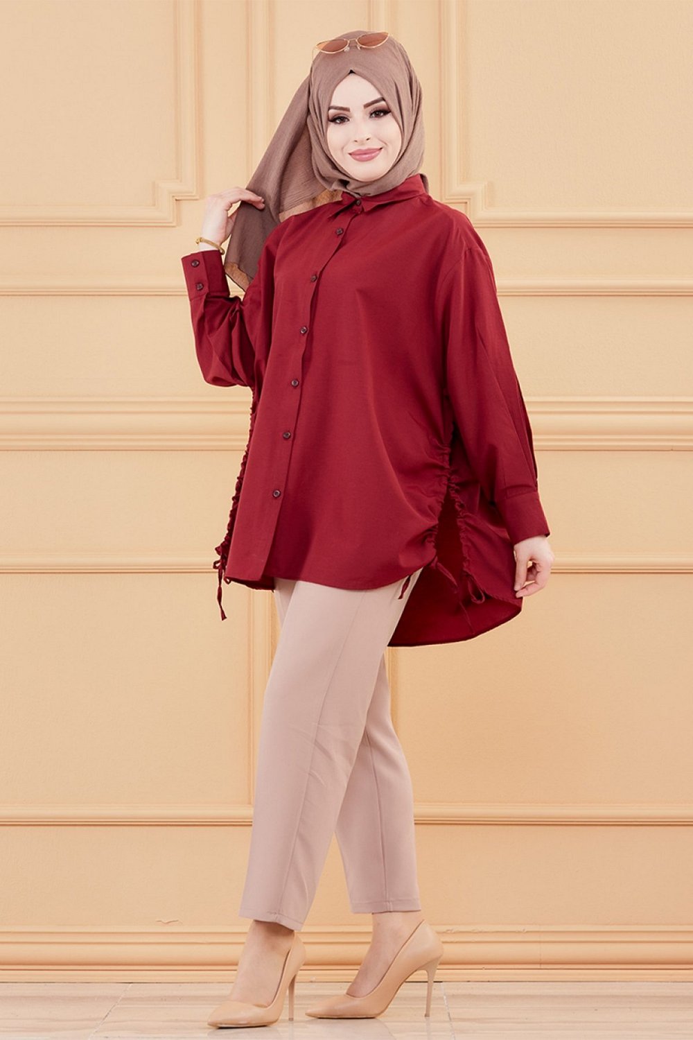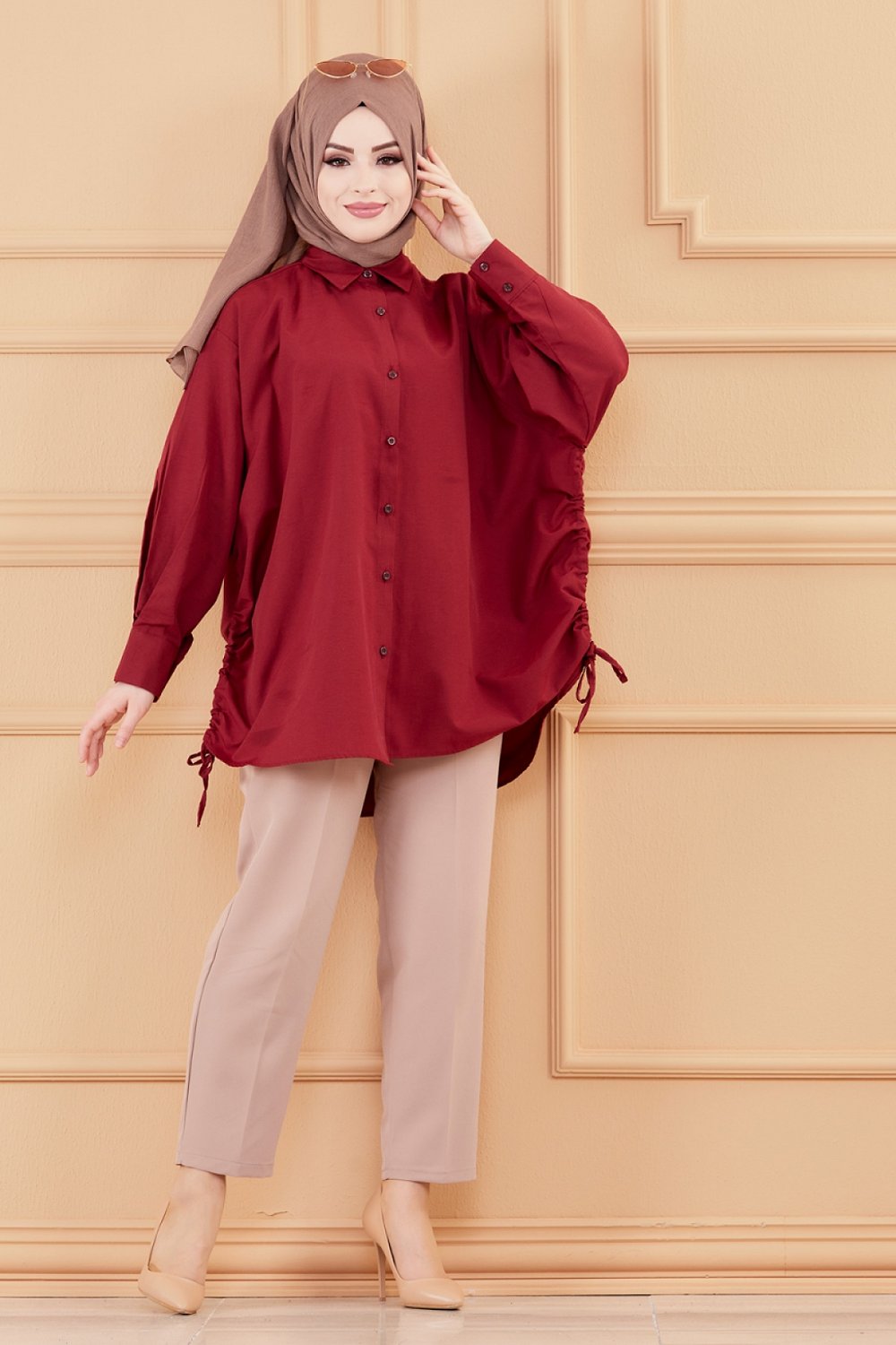 Chemise-Tunique fendue style habille pour femme (Vetement chic pour hijab) - Couleur bordeaux