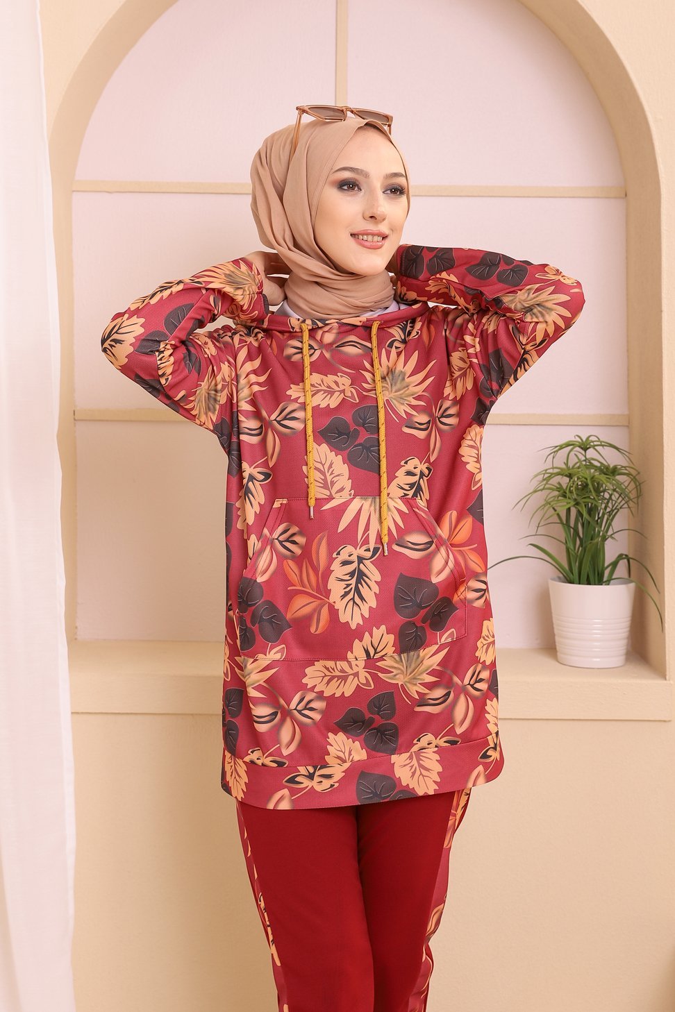 Ensemble tunique et pantalon assorti pour femme (Tenue Hijab Style decontracte) - Couleur rose