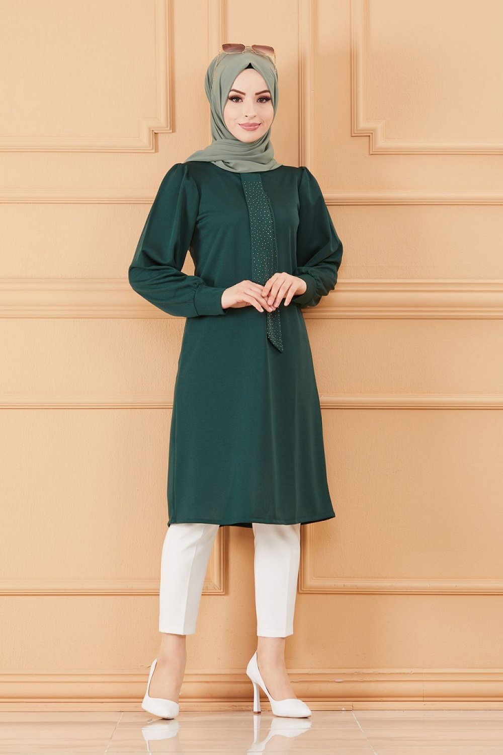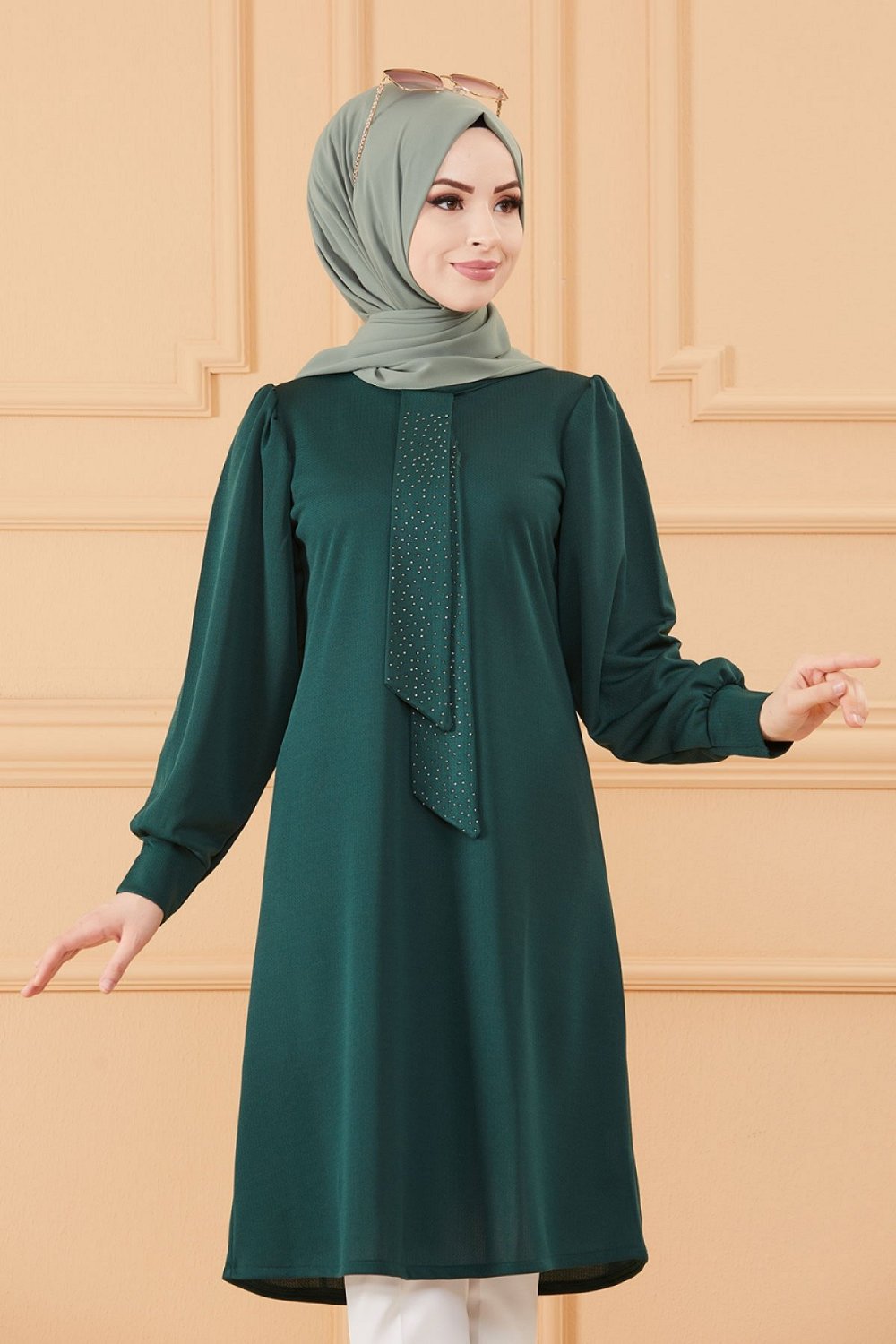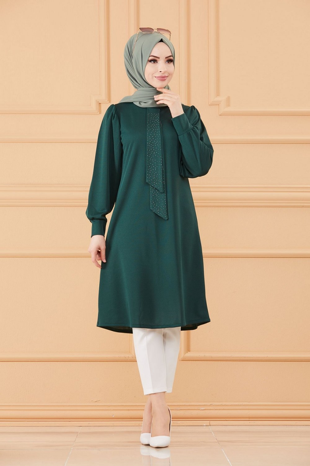 Tunique style habille pour femme (Tenue hijab classique) - Couleur vert emeraude