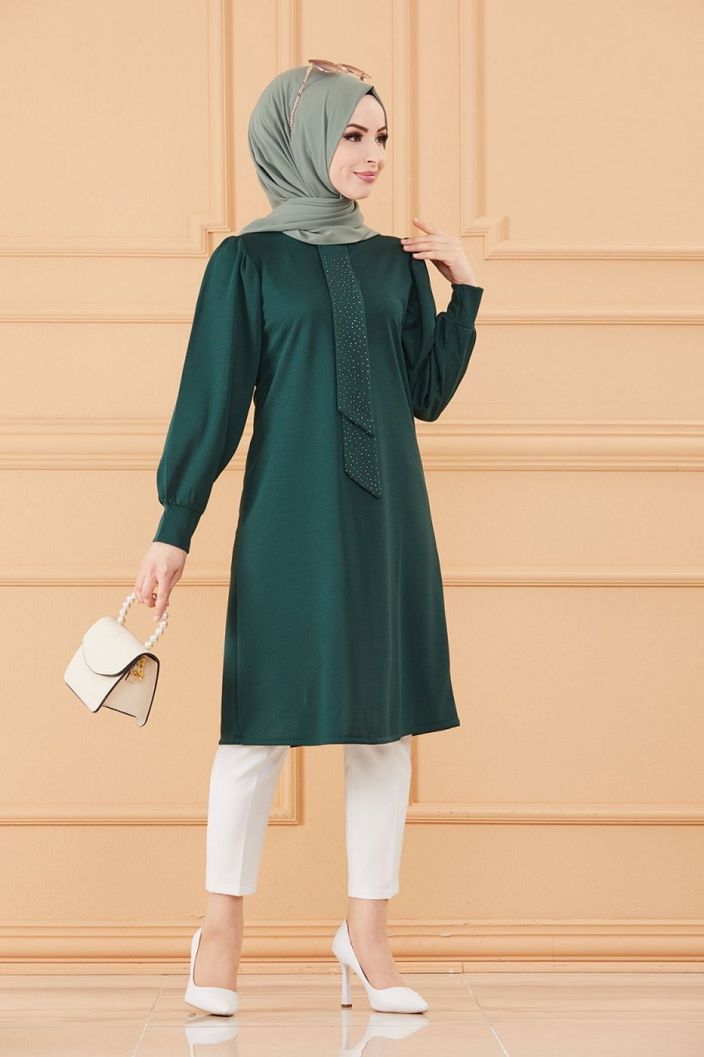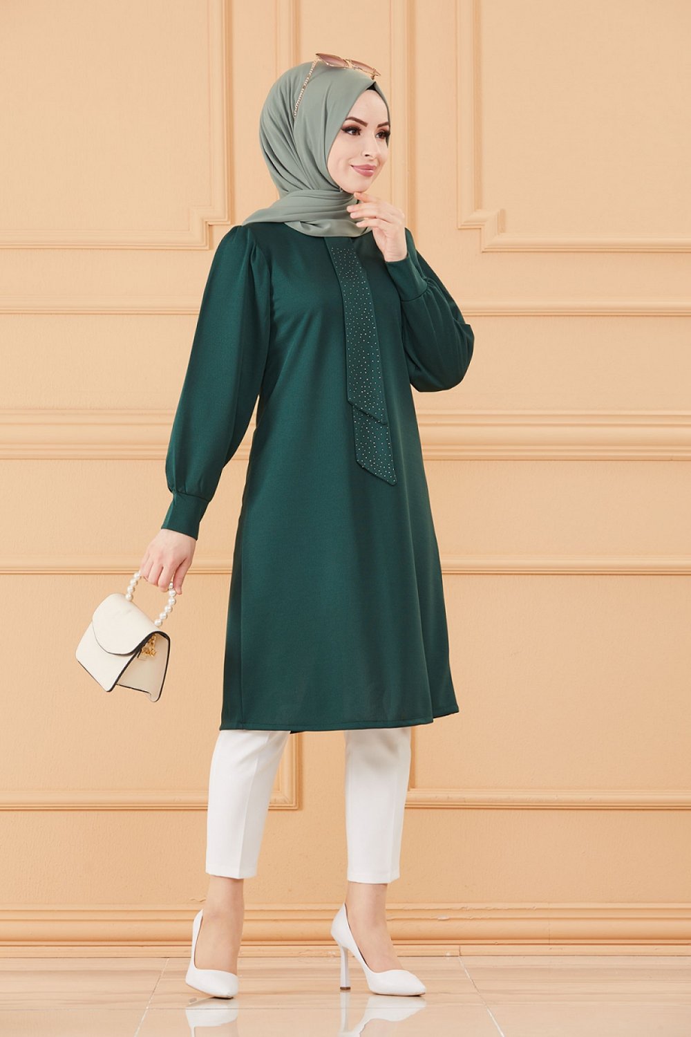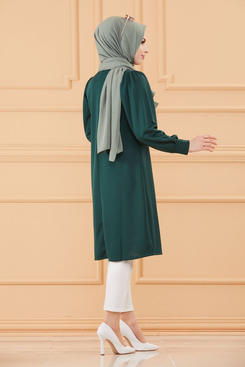 Tunique style habille pour femme (Tenue hijab classique) - Couleur vert emeraude
