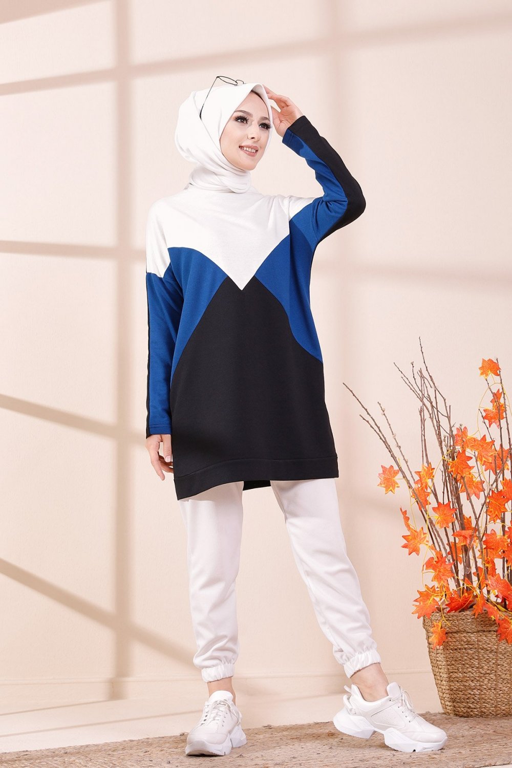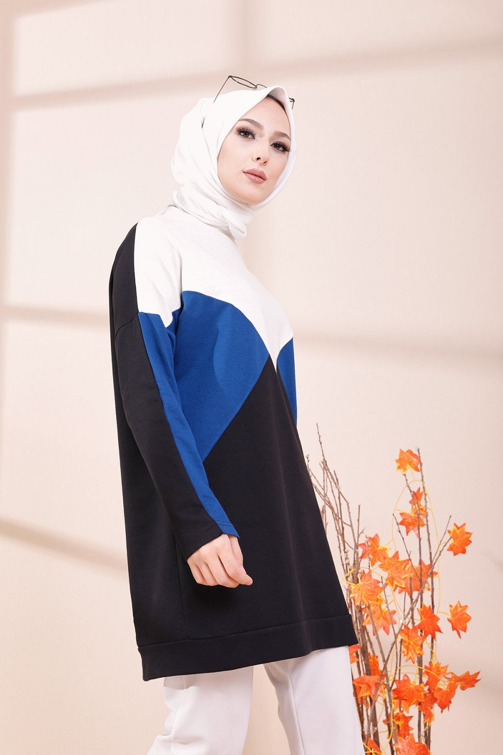 Robe décontractée à capuche de type sportwear - Vêtement Hidjab pour femme musulmane - Couleur noir, blanc et bleu indigo - REF. 32926 (29.90 €)