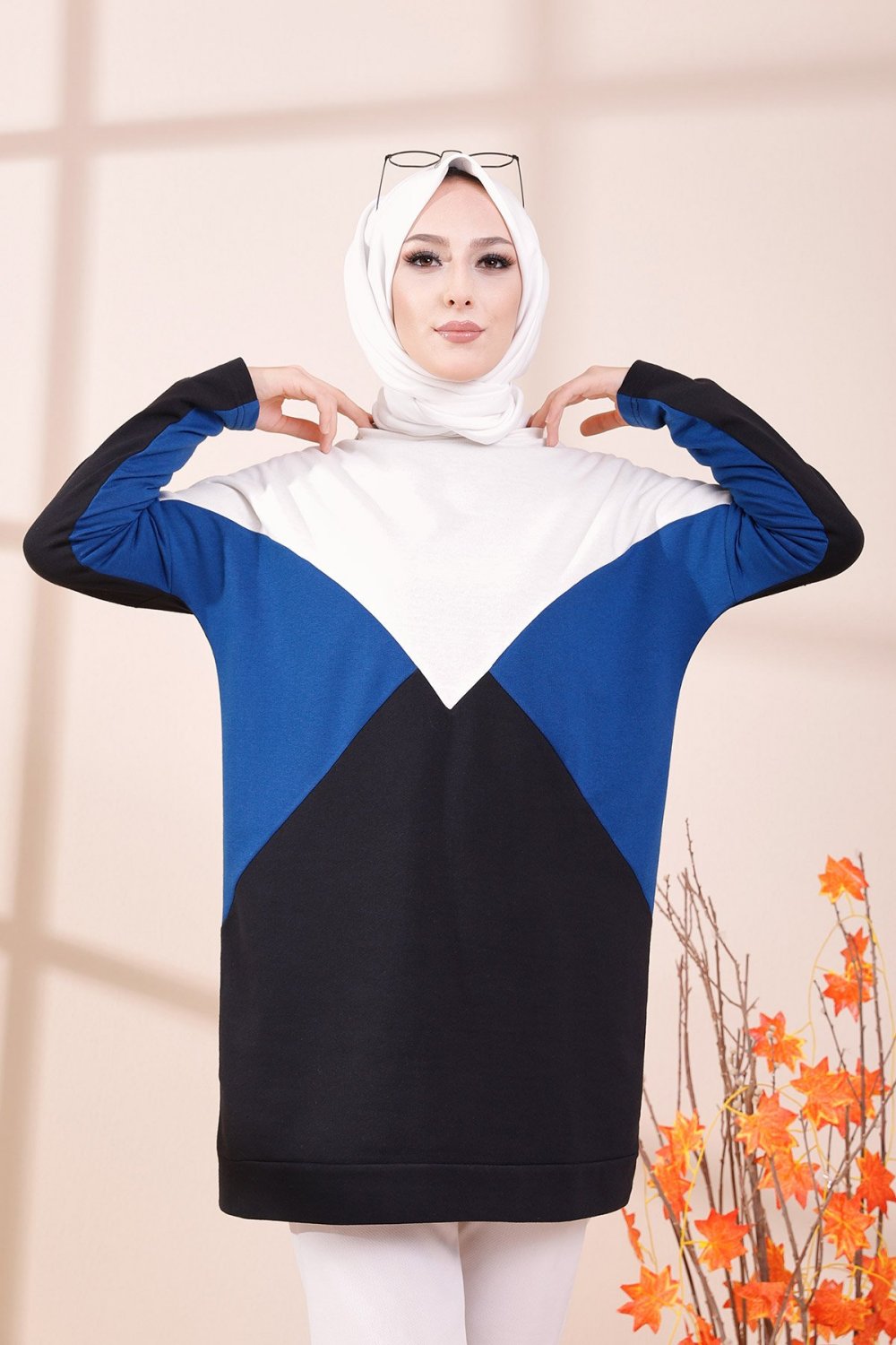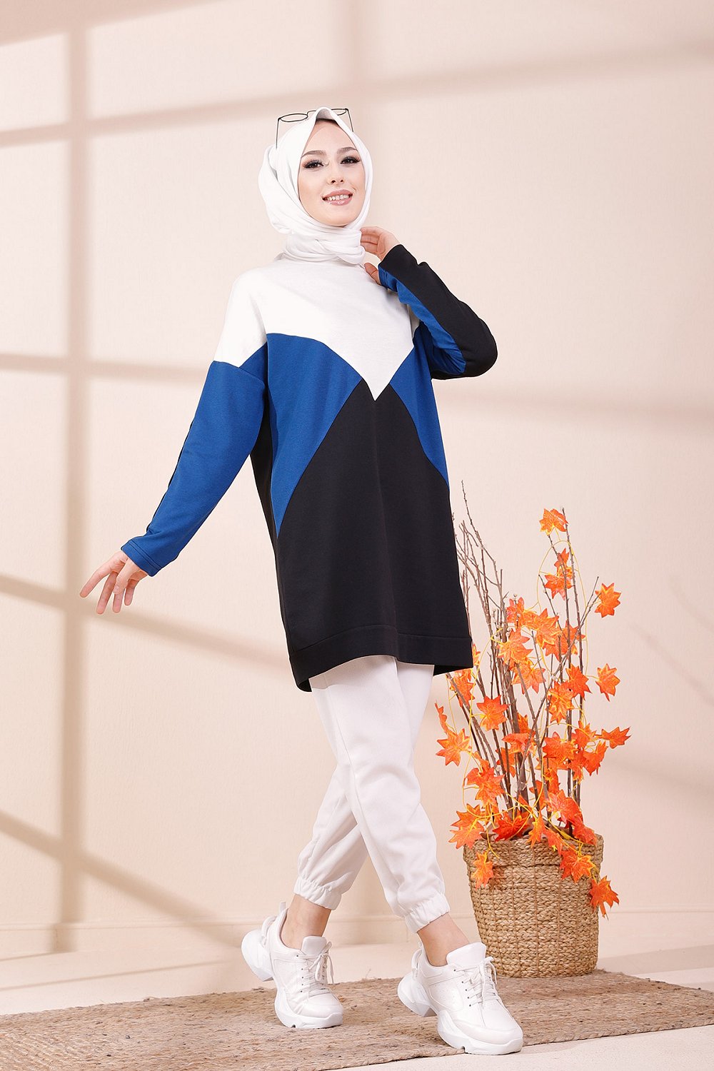 Tunique originale pour femme - Sweat-shirt tricolore - Couleur blanc noir et Bleu roi Vetement & Accessoire