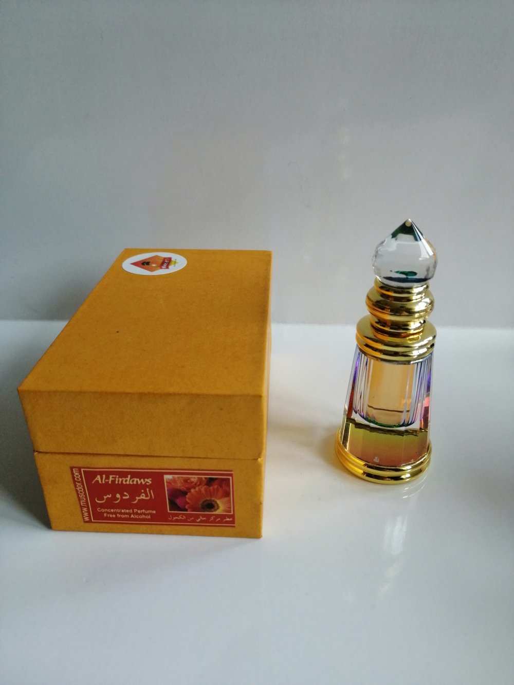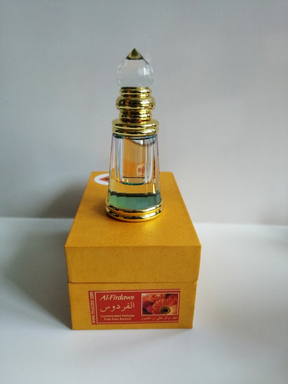 Parfum concentre Musc "Al-Firdaws" - Flacon verre dore (pour femmes)