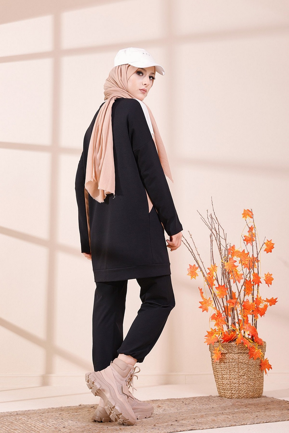 Tunique casual avec grande poche à l'avant (Vêtements islamiques modernes) - Couleur des rayures : noir - REF. 36523 (25.00 €)