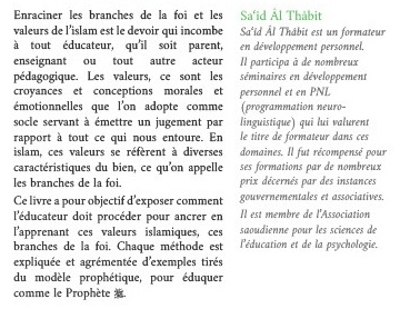 Ce livre a pour objectif d’exposer comment l’éducateur doit procéder pour ancrer en l’apprenant ces valeurs islamiques, ces branches de la foi. Chaque méthode est expliquée et agrémentée d’exemples tirés du modèle prophétique, pour éduquer comme le Prophète.