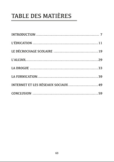 Le présent, c’est nous, les parents d’aujourd’hui ; le futur, c’est nos enfants, les parents de demain… Si nous souhaitons construire un avenir où nos enfants vivront de façon épanouie à tous les points de vue (religieux, social, comportemental, professionnel, familial, amoureux, etc.), il nous faut alors les former à demain, mais aussi — et surtout — remédier à tout ce qui peut les dévier de leur destinée future d’hommes et de femmes responsables.