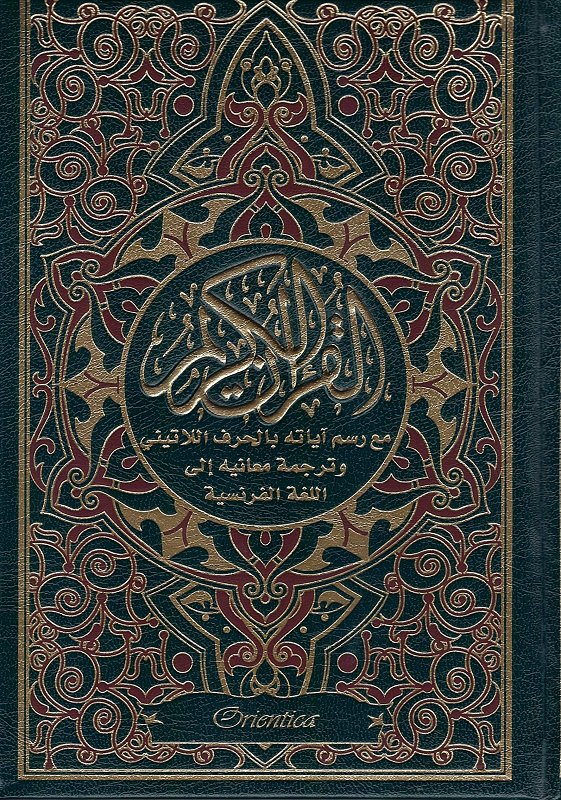 Le Saint Coran arabe avec traduction en langue française du sens de ses versets et transcription phonétique avec arabesques bordées de dorure - Plusieurs couleurs - REF. 806 (22.00 €)