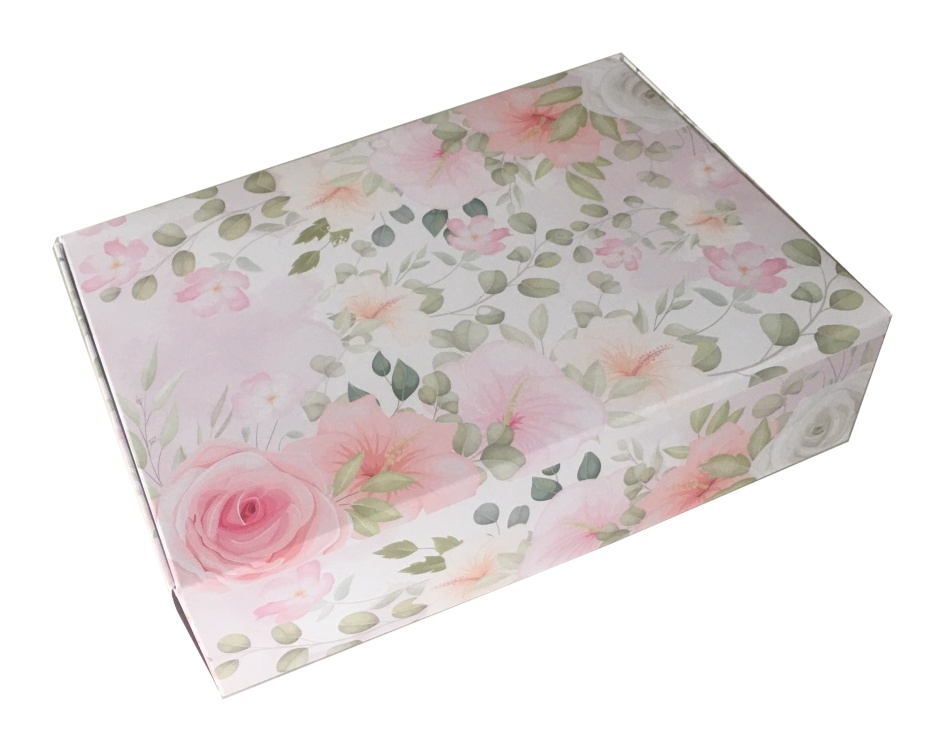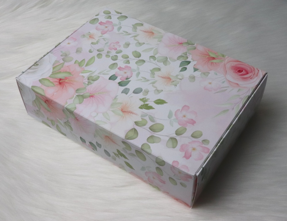 Coffret cadeau en carton aux dimensions 16 cm x 22 cm x 6 cm.