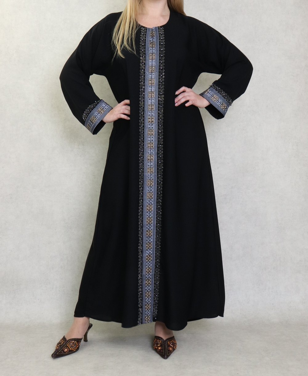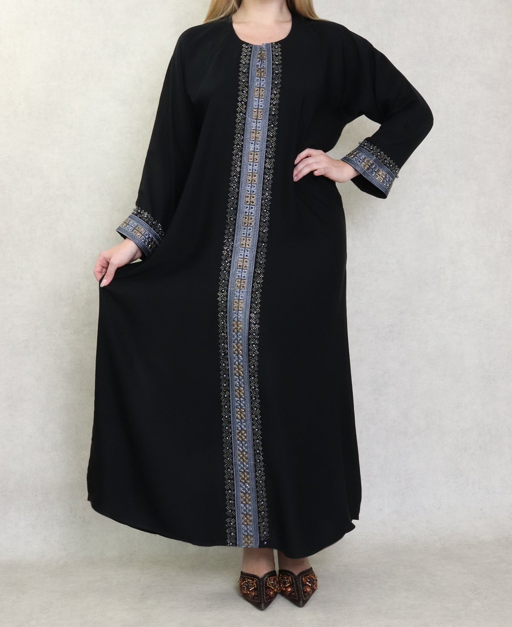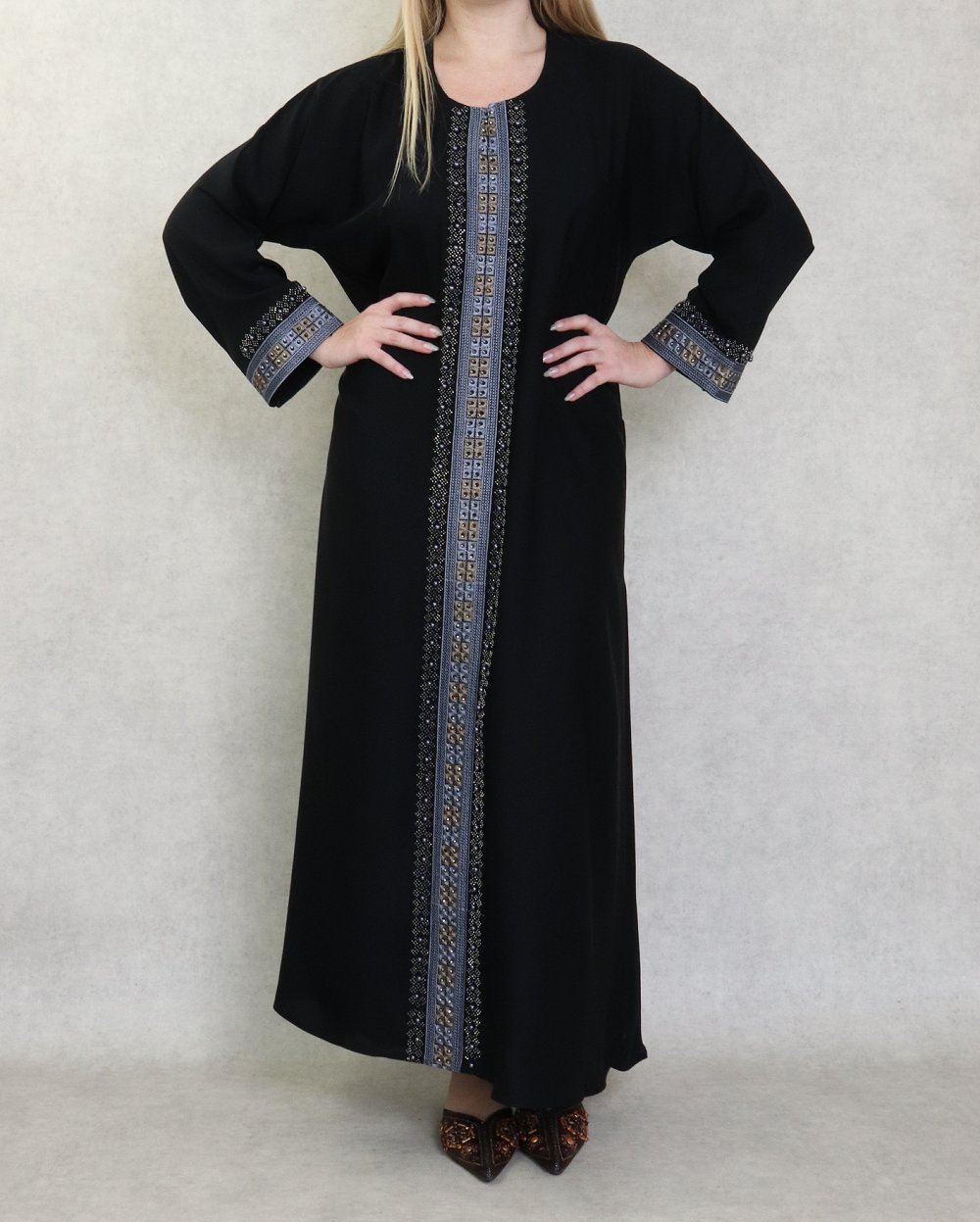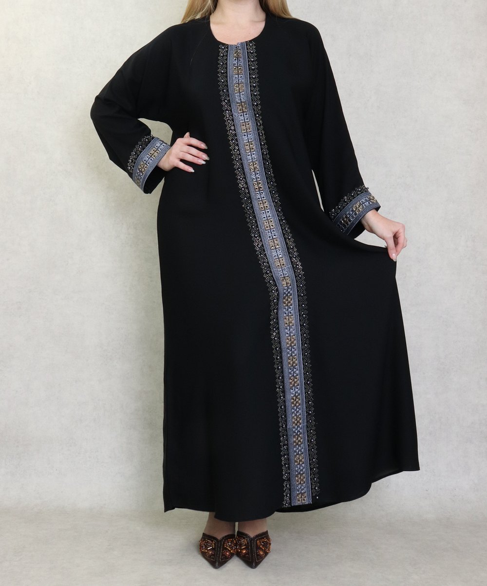 Robe Abaya Dubaï noire de qualité avec bande brodée et strass idéale pour la fête de l'Aïd 2025 - REF. 38128 (45.00 €)