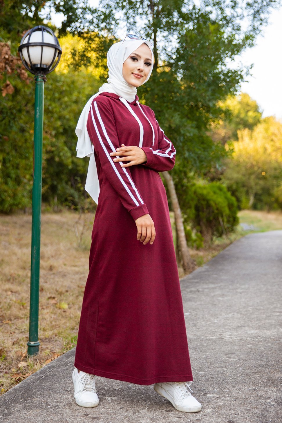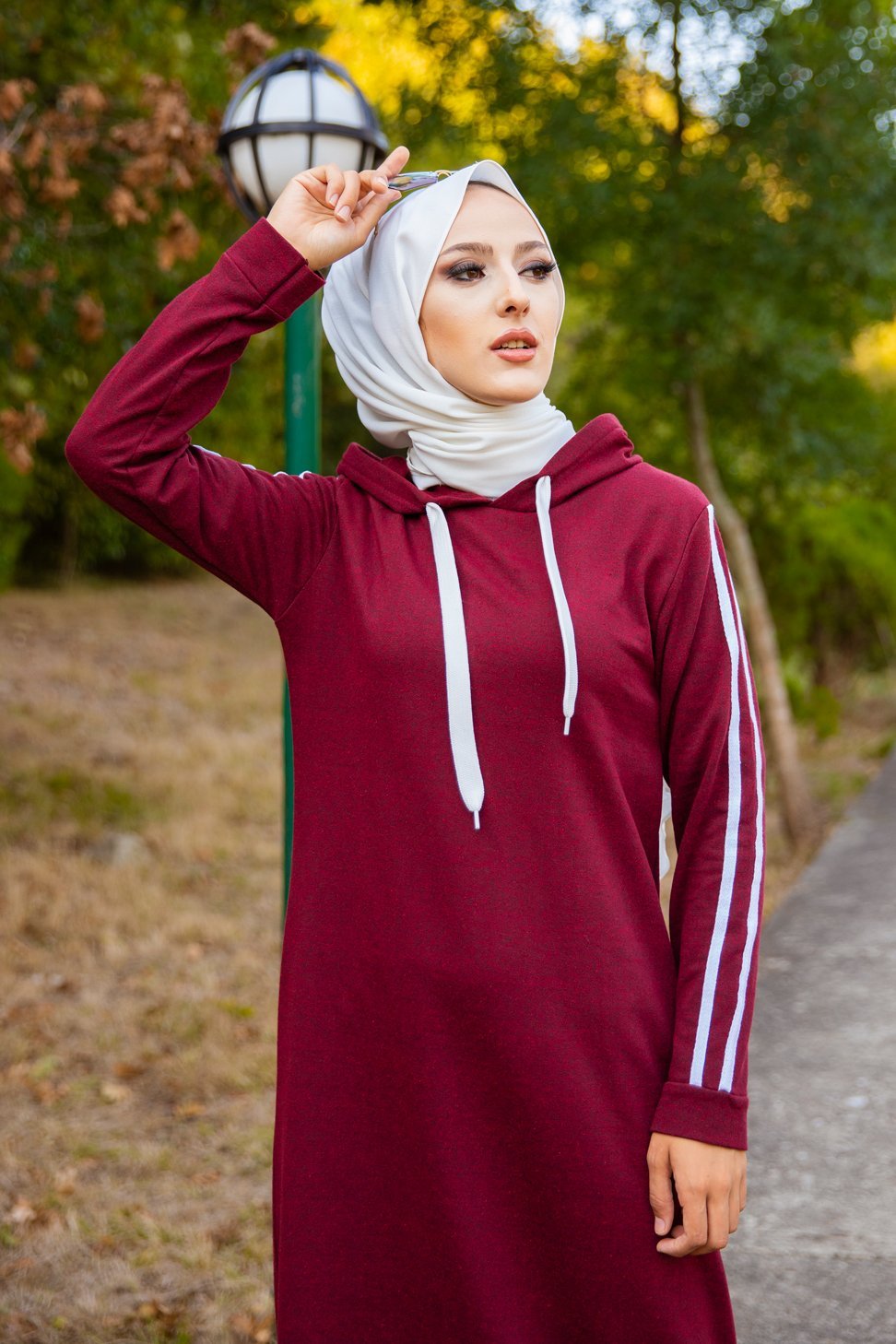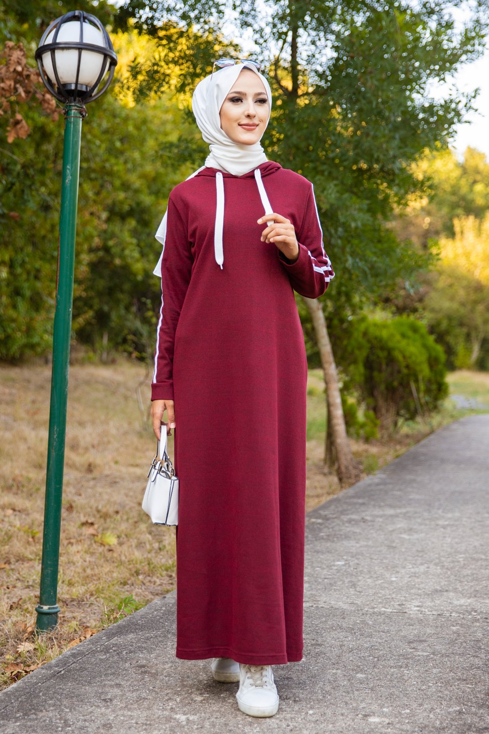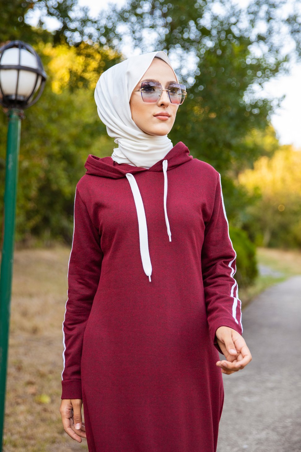 Robe avec capuche style moderne et sport (Vetement adapte pour Hijab - Nouveaute) - Couleur bordeaux
