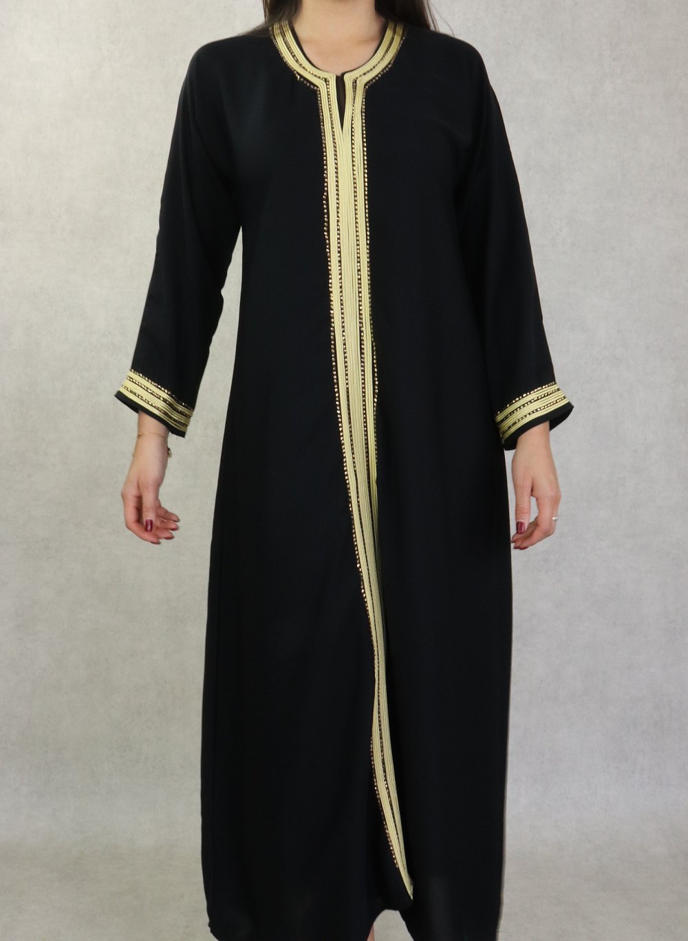 Abaya Dubai de couleur noire fournie avec son châle assorti.