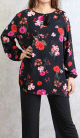 Tunique noire à fleurs roses et rouges (Grandes tailles disponibles pour femmes) - REF. 32095 (19.00 €)