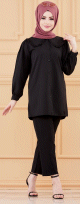 Ensemble tunique boutonnée et pantalon assorti (Style femme hijab) - Couleur noir - REF. 36013 (36.90 €)