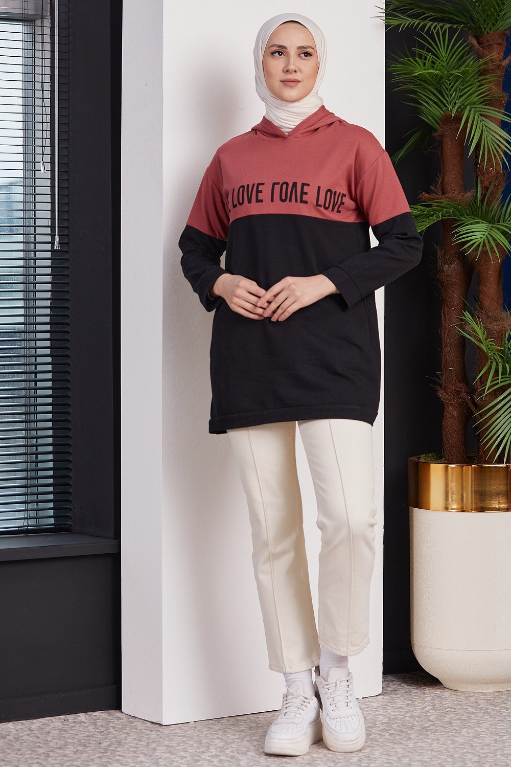 Tunique avec capuche pour femme (Sweat-shirt moderne avec inscription Love) - Couleur vieux rose Vetement & Accessoire