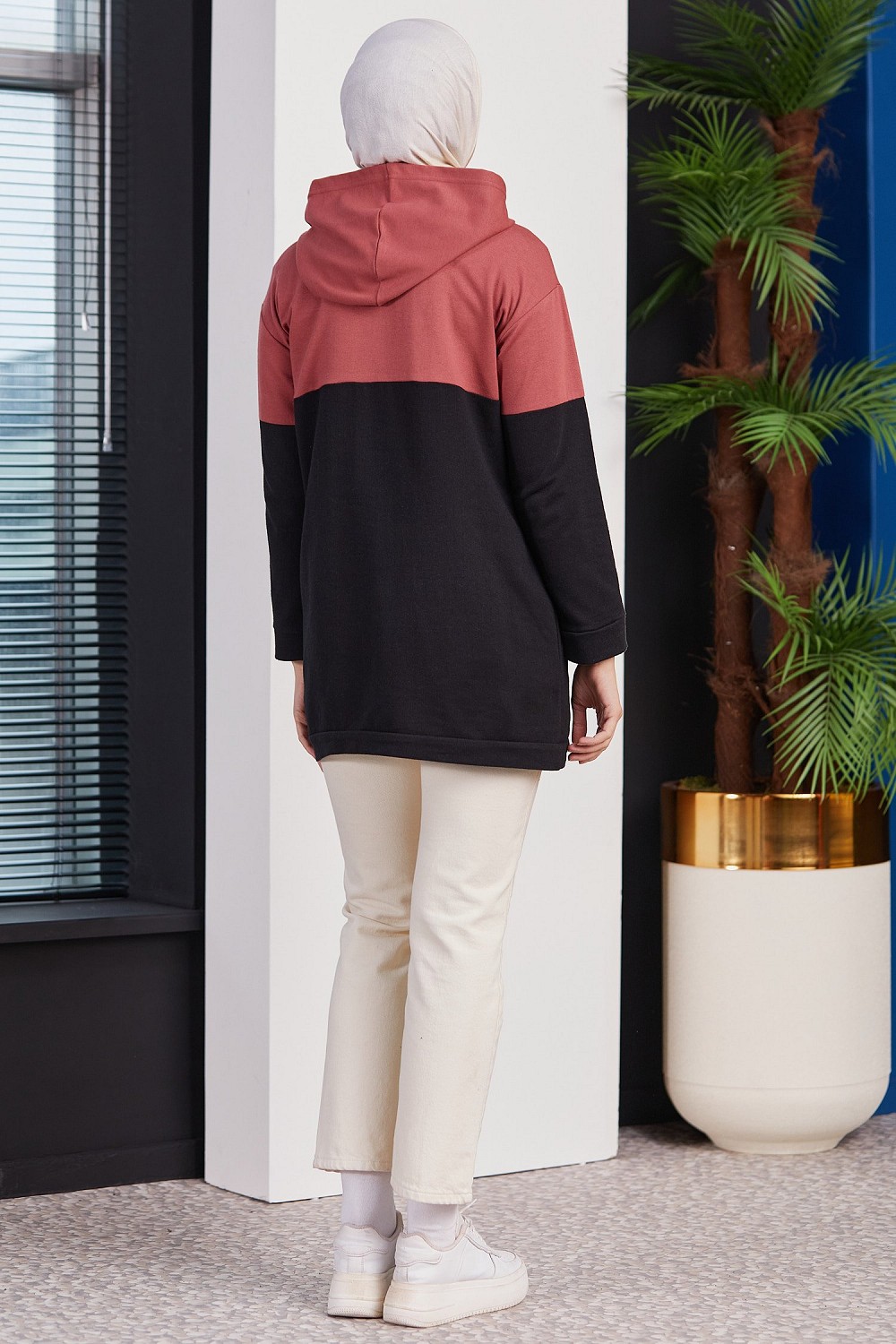 Tunique décontractée avec capuche (Vetement hijab) - Couleur noir avec bandes blanches - REF. 35622 (19.00 €) - En Promotion à 16.90 €
