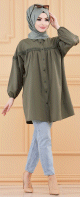 Tunique longue - Chemise boutonnée ample (Vêtements femme pour Hijab) - Couleur kaki - REF. 35919 (29.00 €)