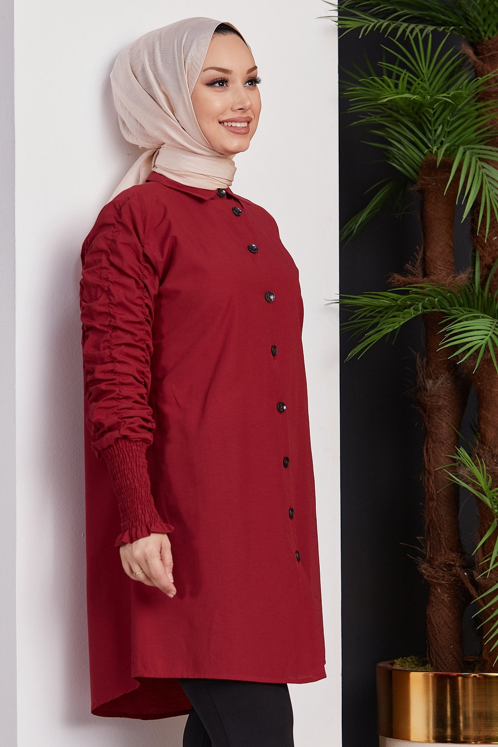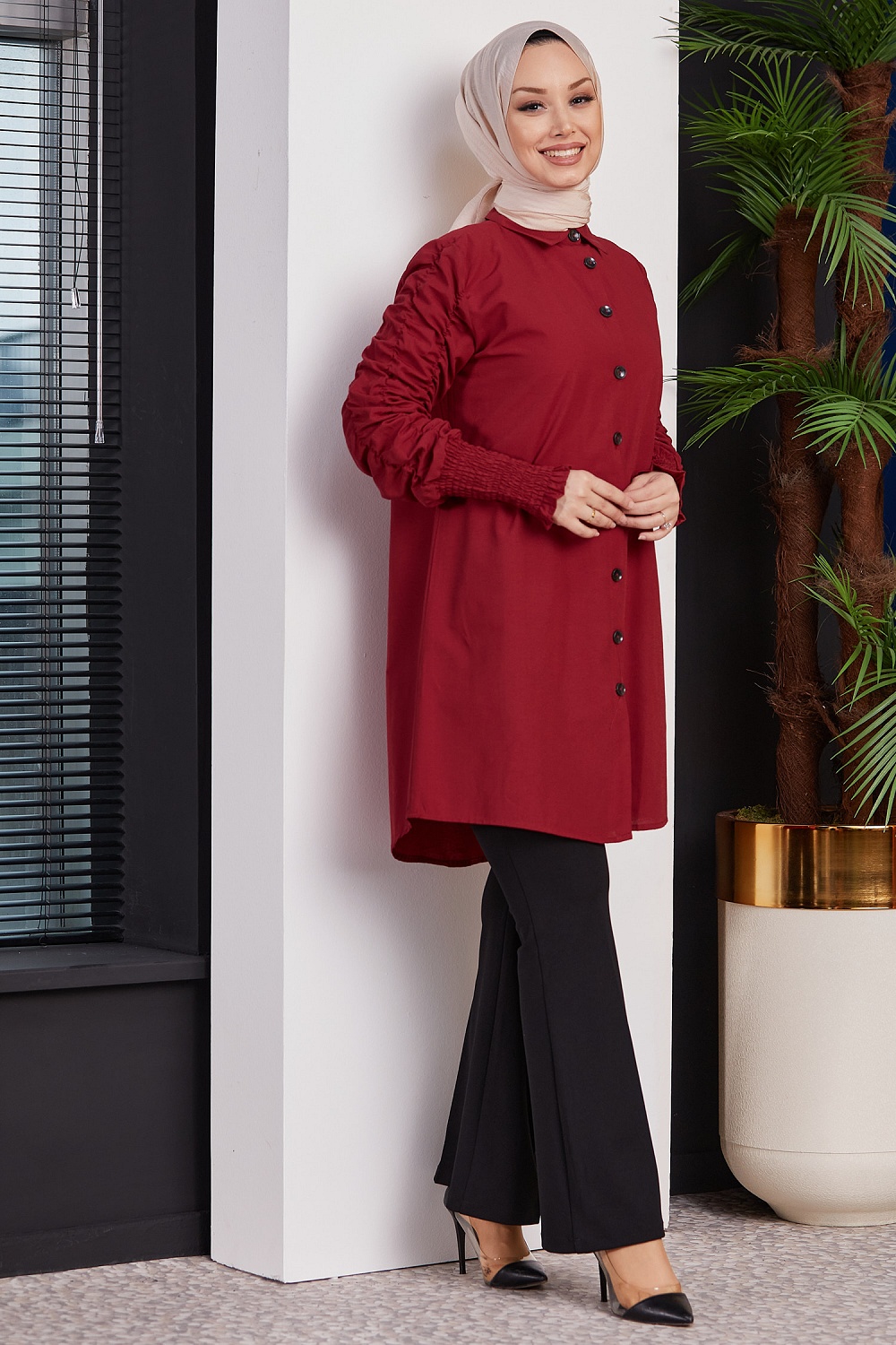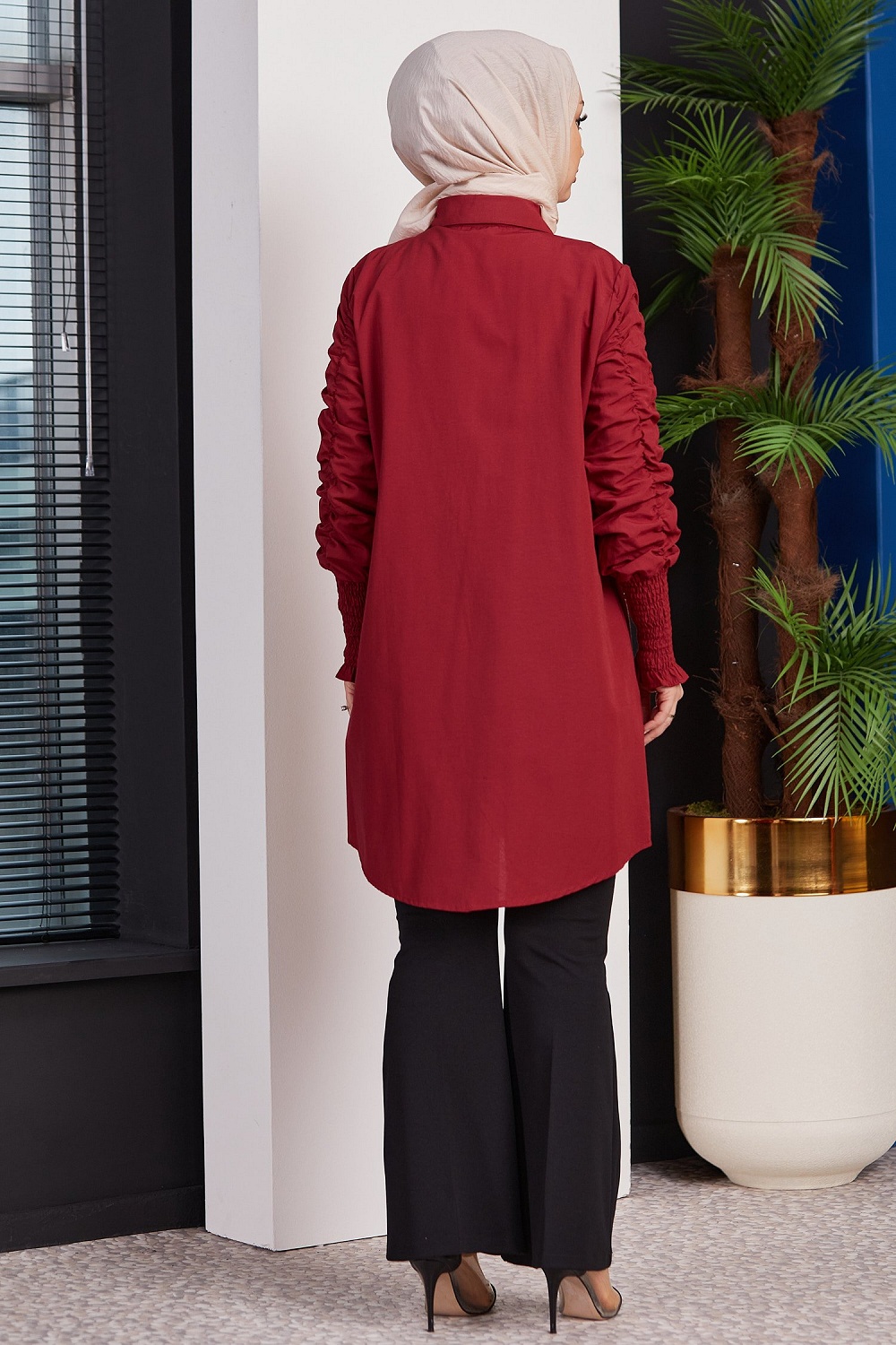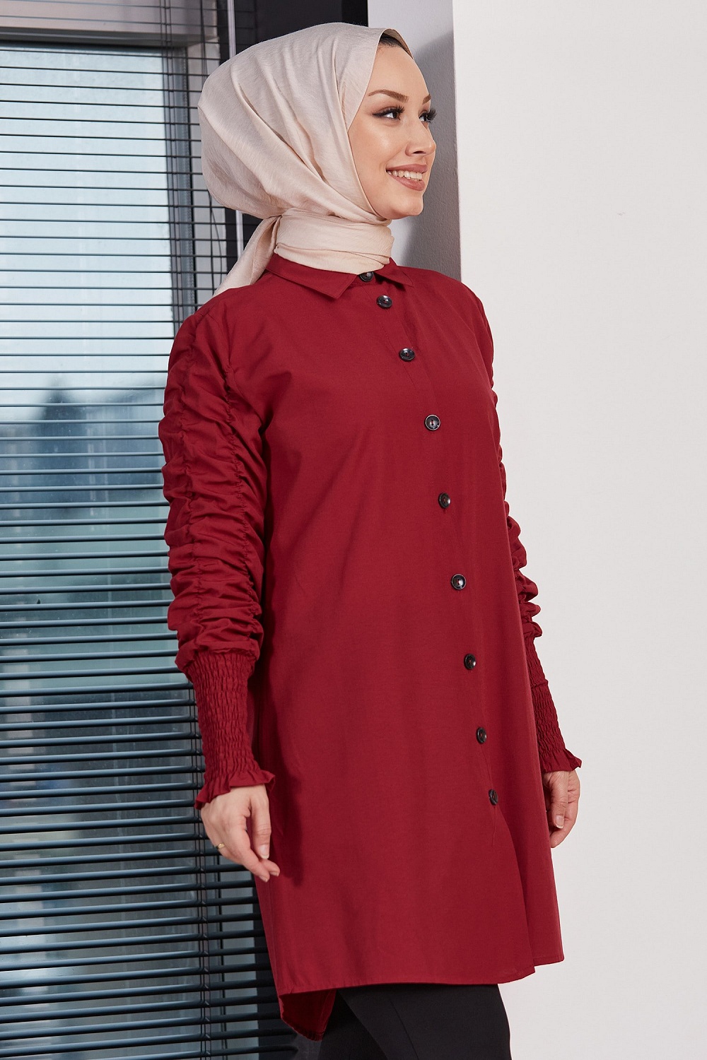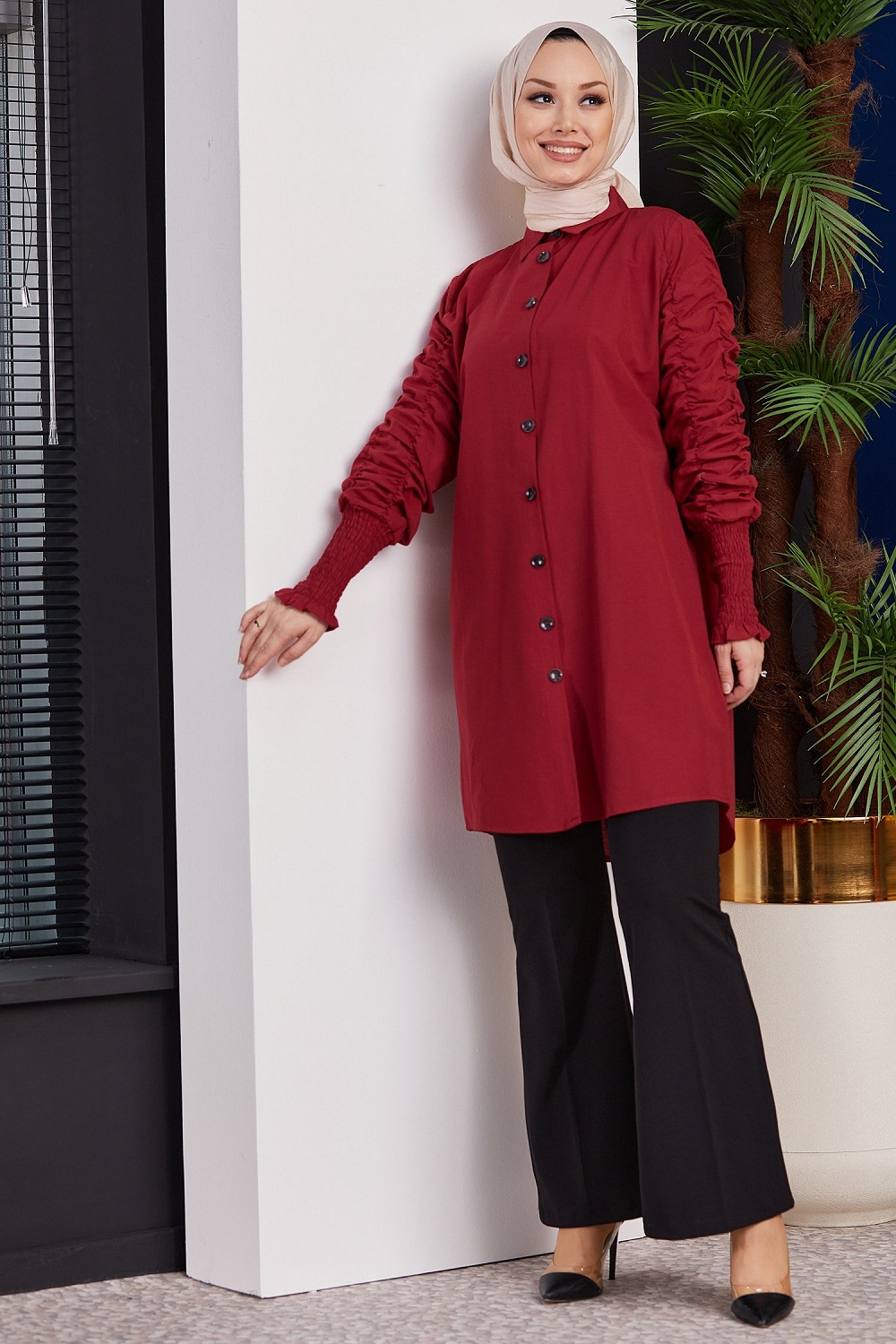 Chemise manches plissées (Vêtement Hijab turque style chic - Boutique France) - Couleur bordeaux Vetement & Accessoire