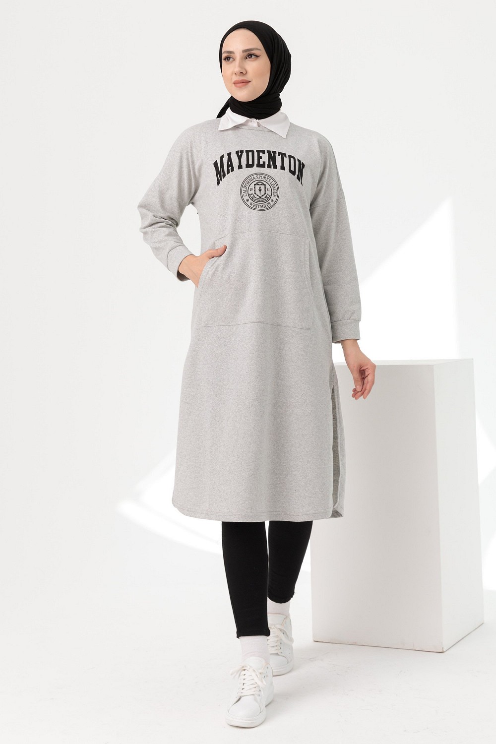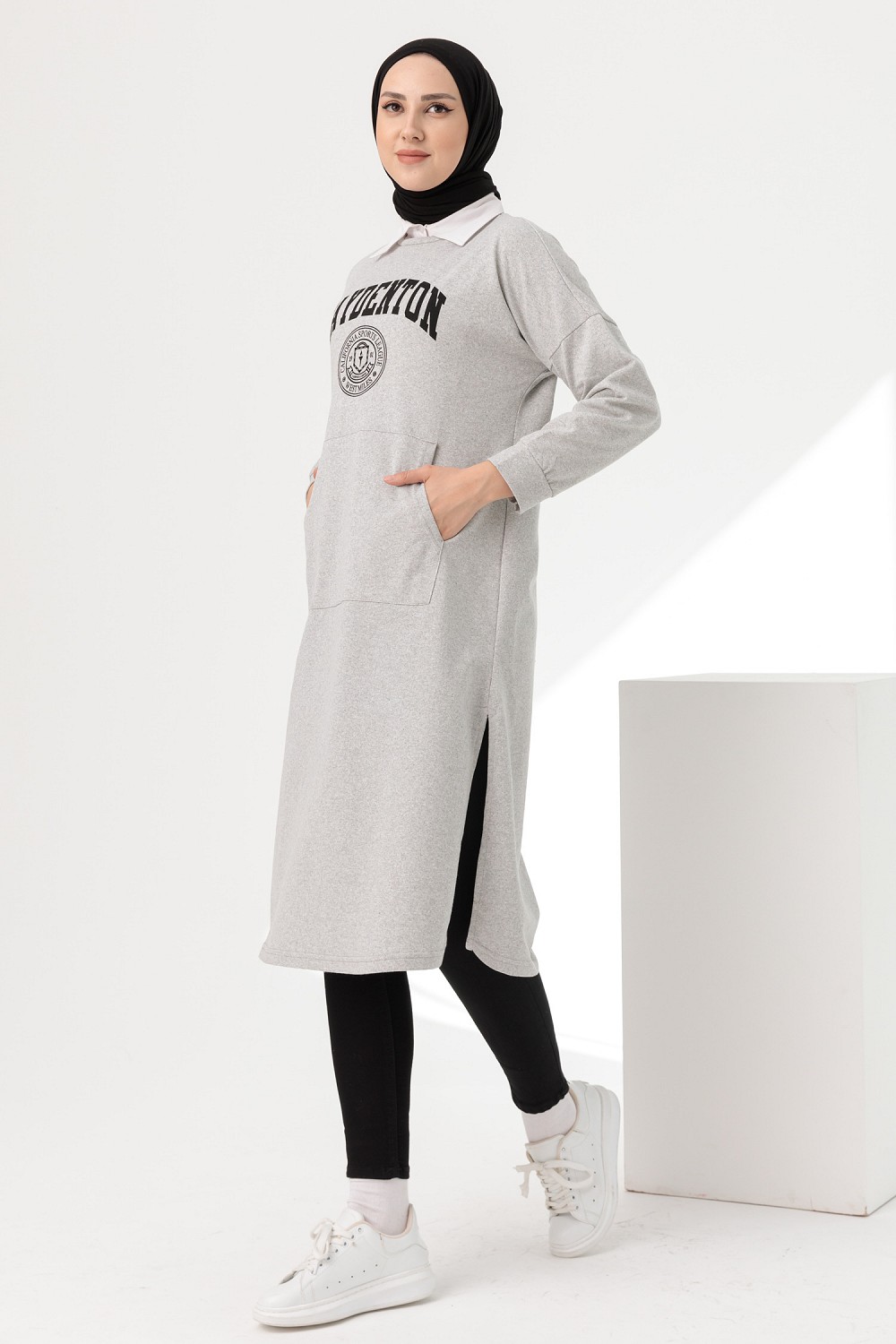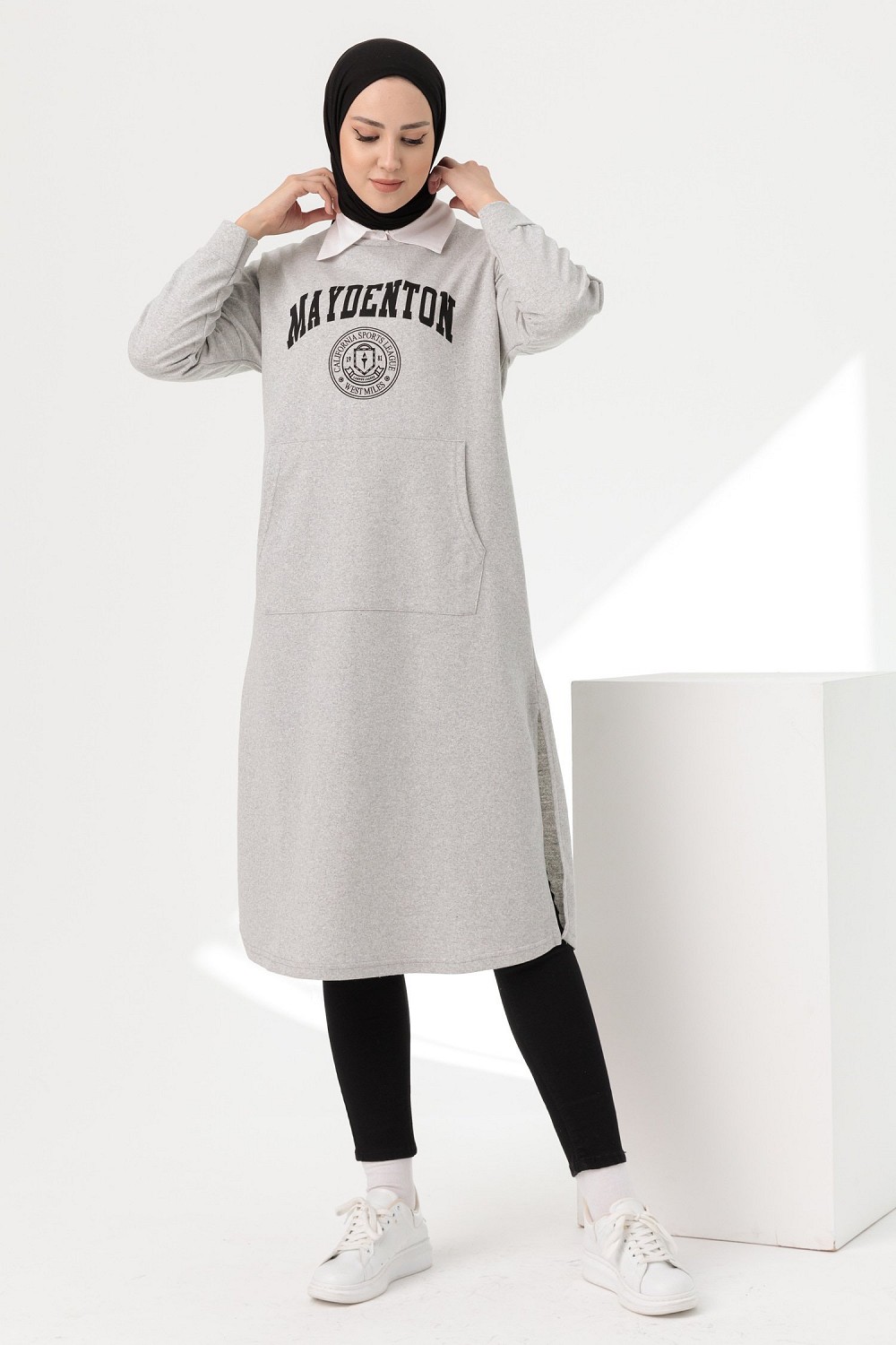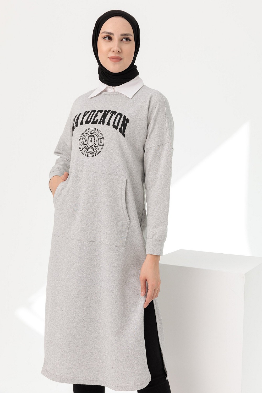 Robe - Tunique longue pour femme (Vêtement Hijab moderne) - Couleur gris clair Vetement & Accessoire