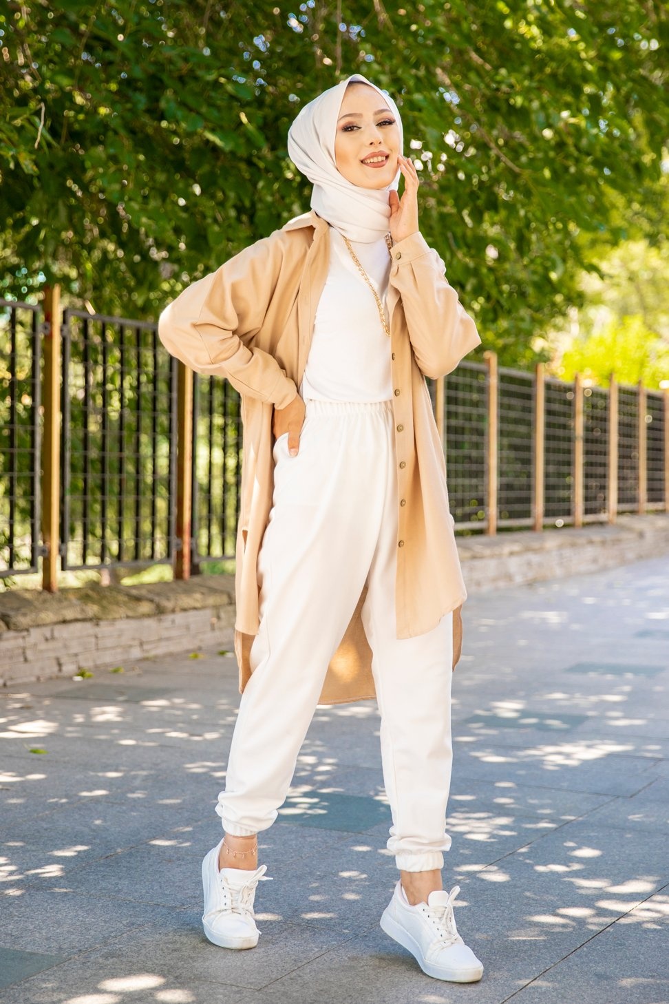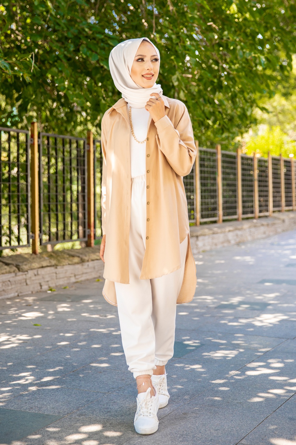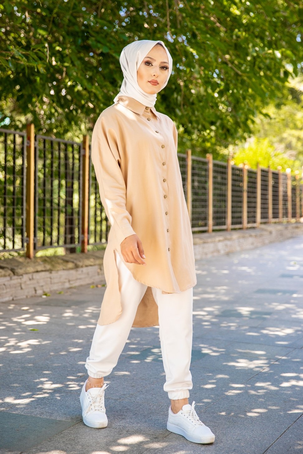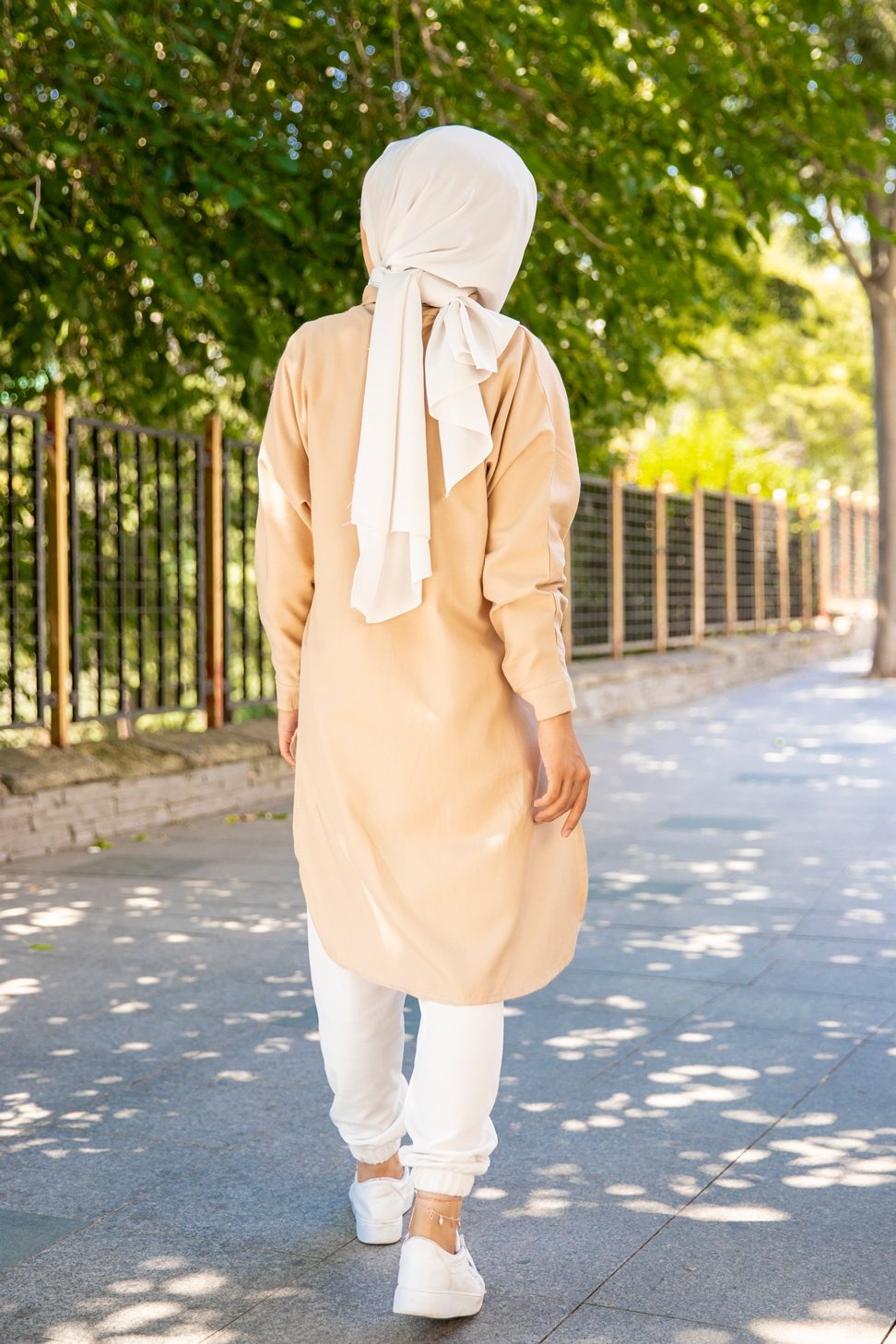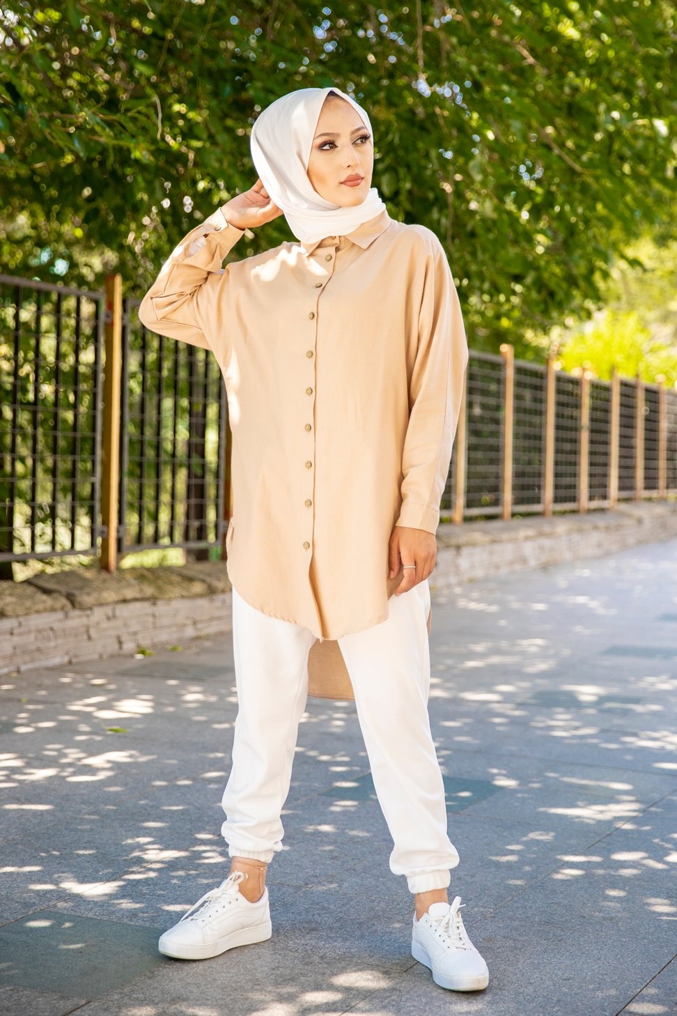 Chemise à gros boutons (Tunique style habillé pour femme voilée) - Couleur beige - REF. 35909 (26.90 €)