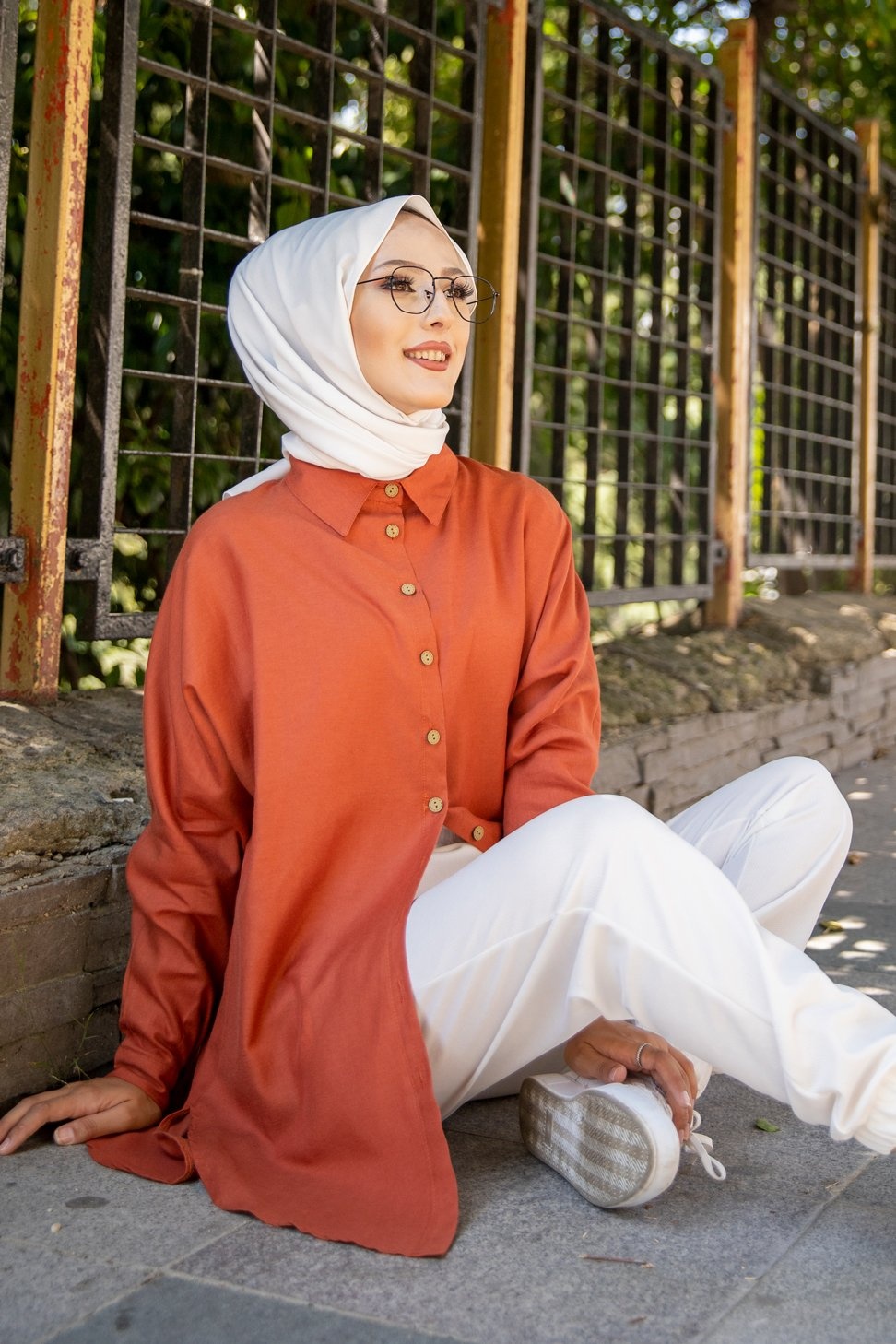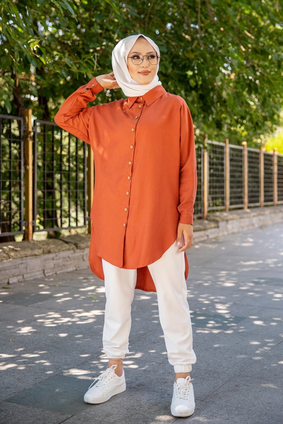 Chemise longe pour femme (Vetement pour hijab) - Couleur brique
