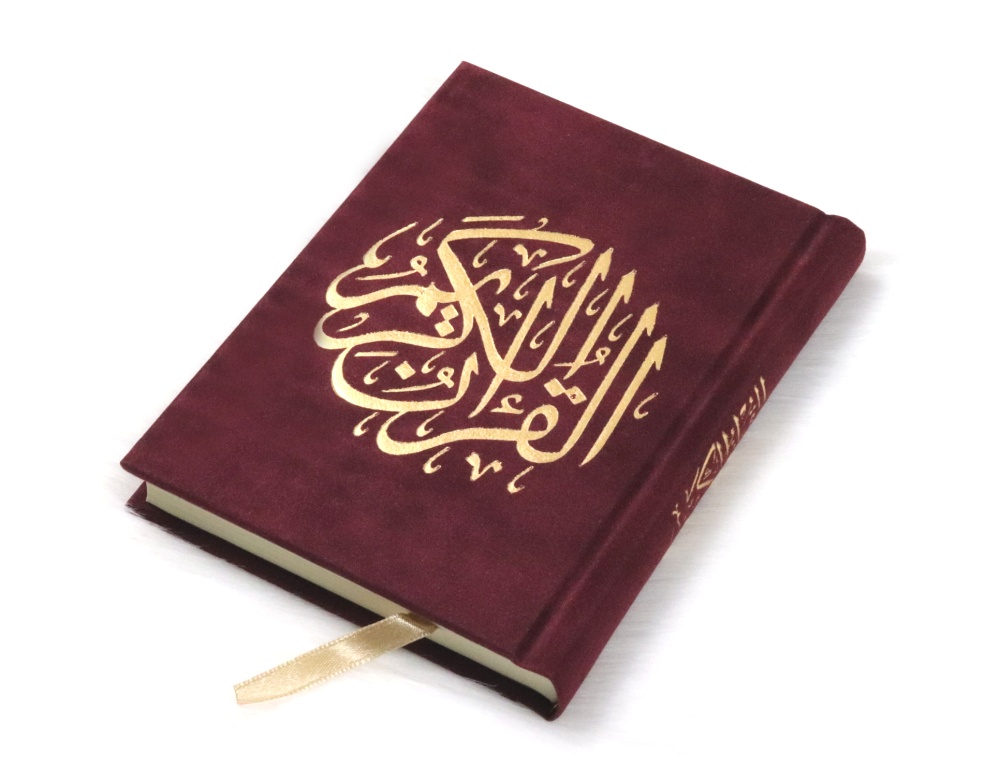 Le Coran couverture rigide de luxe couverture en daim dorée (10 x 14 cm) - Couleur Bordeaux - مصحف ورق المدينة مخمل Livre