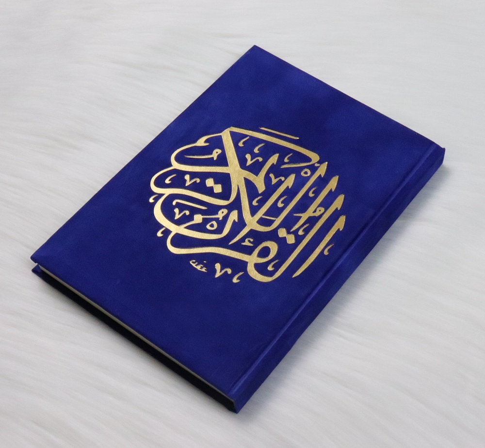 Le Coran couverture rigide de luxe couverture en daim doree (14 x 20 cm) - Couleur Bleu roi