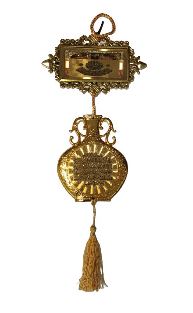 Pendentif islamique décoratif doré le nom du prophète Muhammad et l'attestation de foi (chahada) - REF. 23979 (4.50 €)