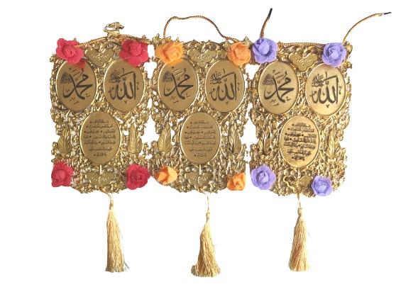 Garniture murale dorée avec Le nom d'ALLAH, le Nom de prophète Mohammed (Saw) et Sourate Al-Ikhlass - REF. 24001 (3.90 €)