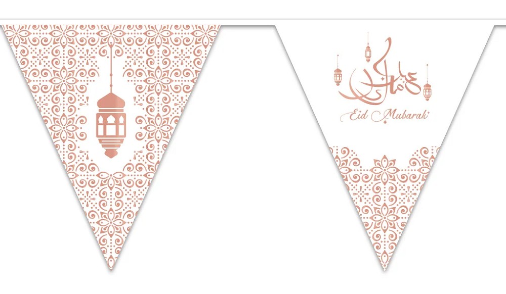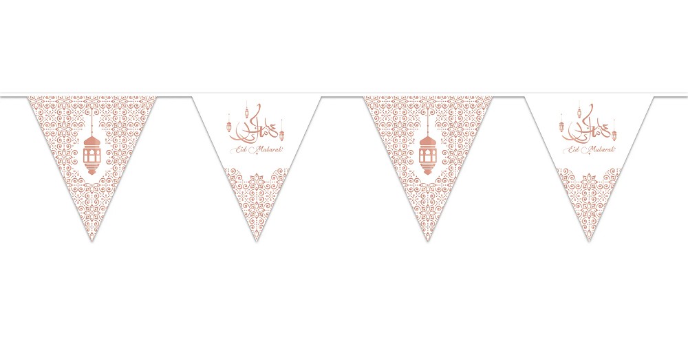 Décorez le salon avec cette belle ligne de drapeau. Le drapeau a le texte 'Eid Mubarak'.