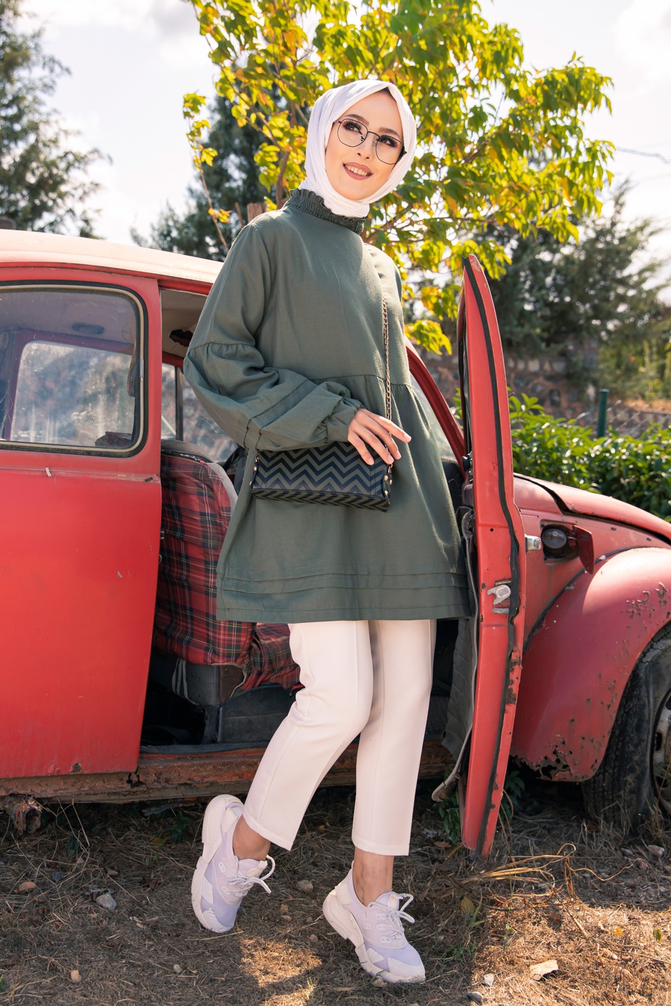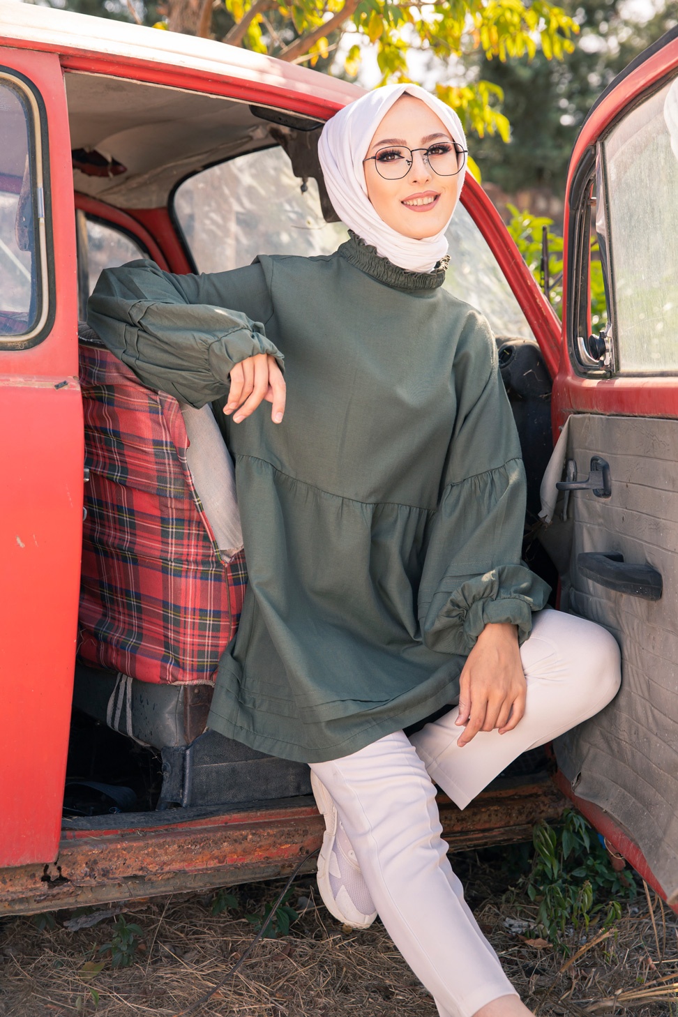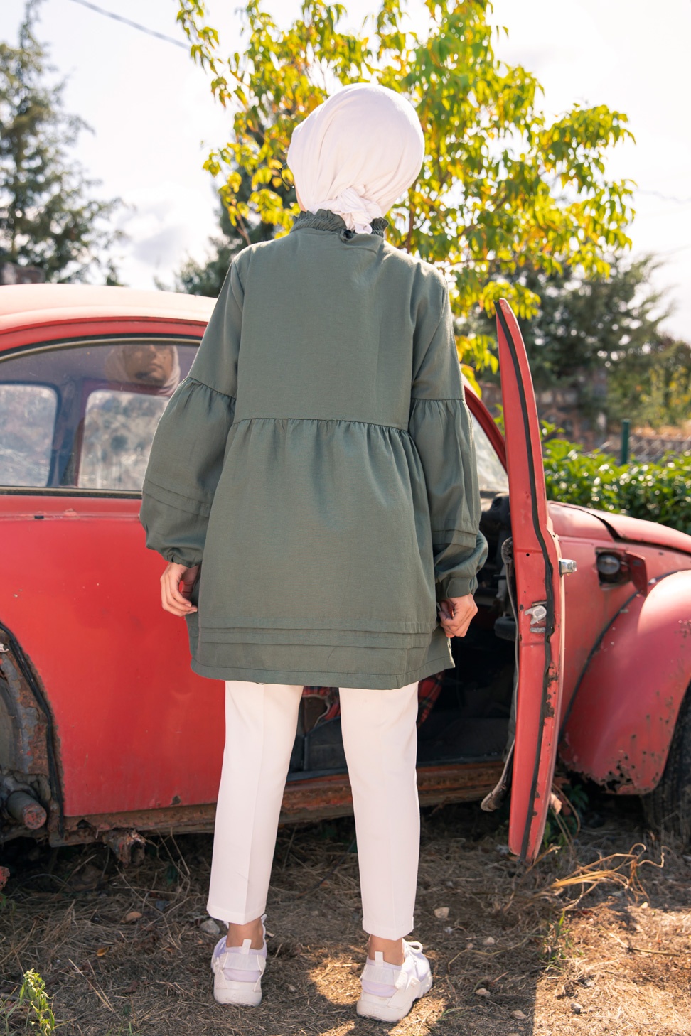 Veste avec ceinture (Vetement Hijab - Boutique en ligne France) - Couleur kaki - REF. 35395 (19.90 €)
