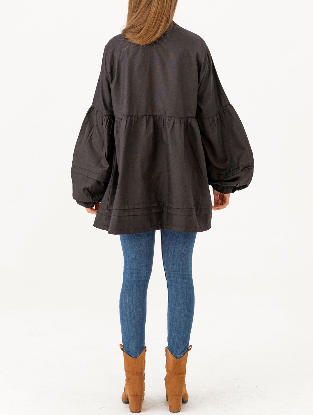 Tunique ample avec grandes poches et liens de serrage - Couleur anthracite et beige - REF. 37164 (19.90 €)