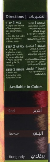 Ce henna peut être utilisé de plusieurs manières (comme une teinture de cheveux ou sur les mains) :