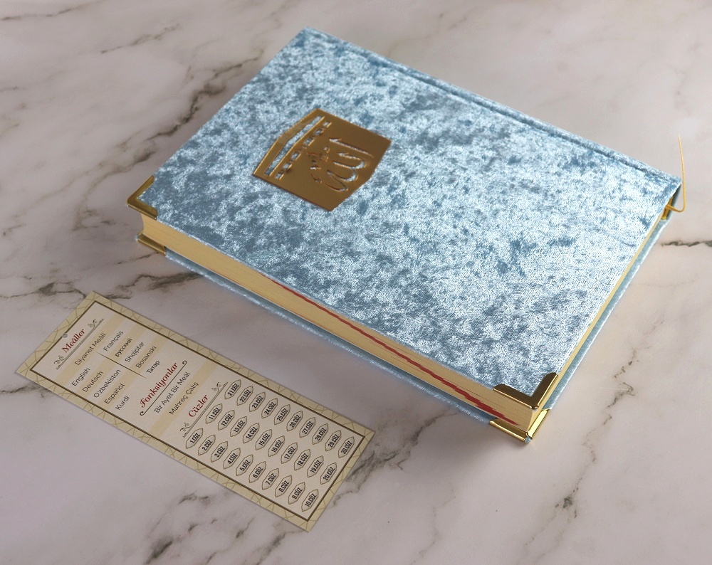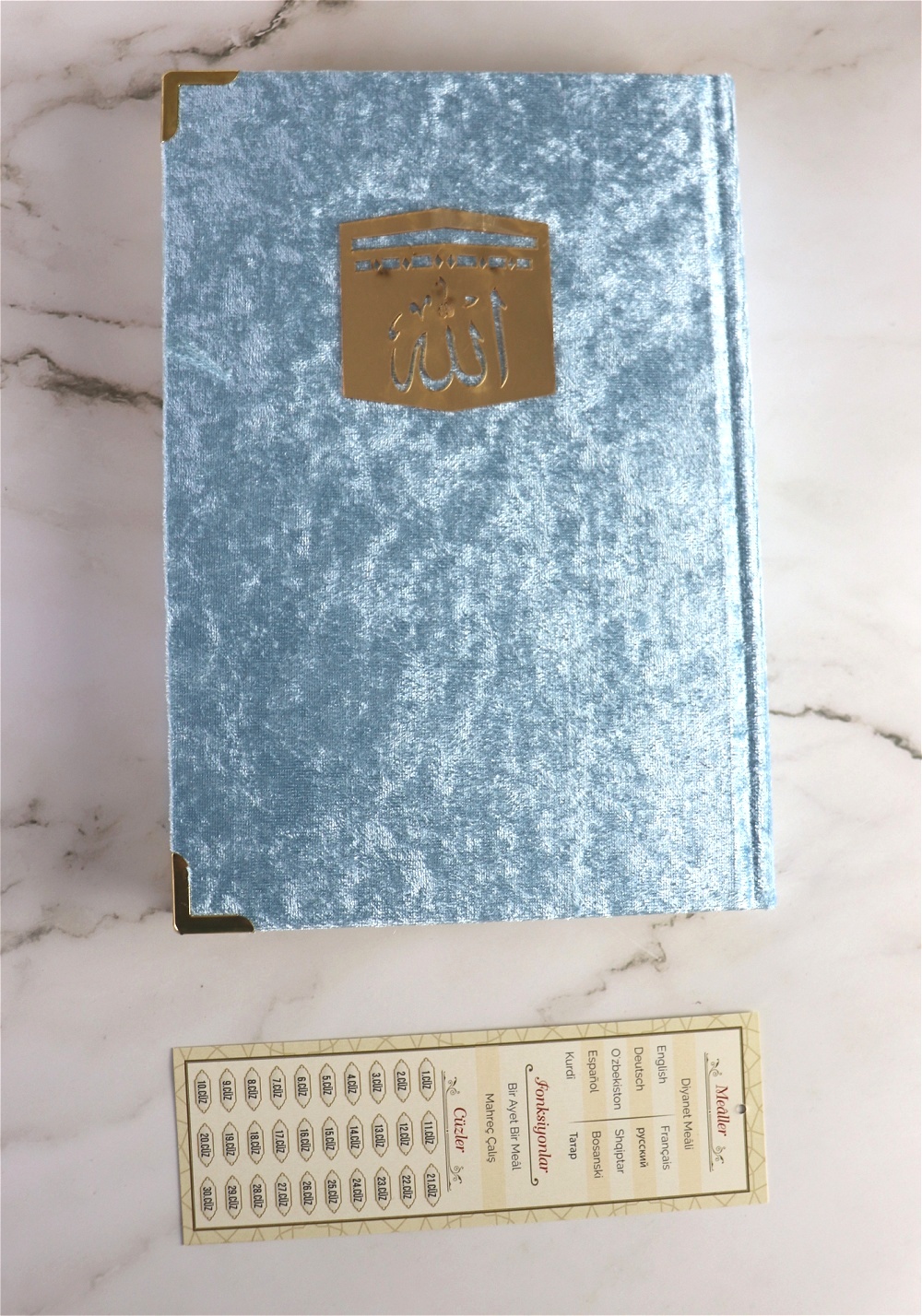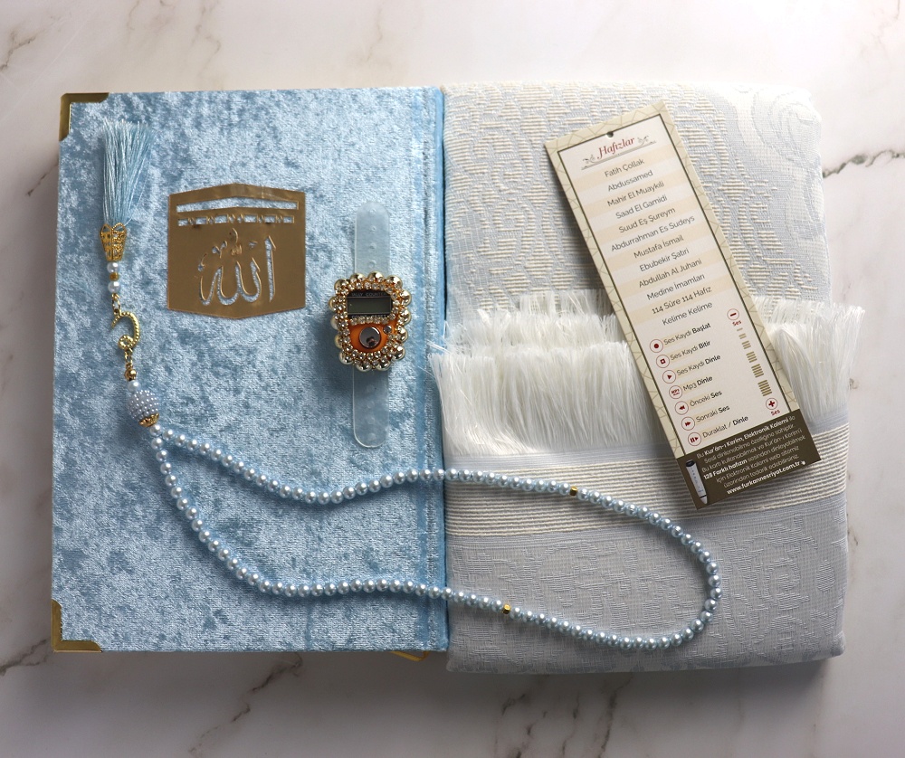 Ce Coran est également disponible en pack cadeau avec tapis et chapelet assortis...