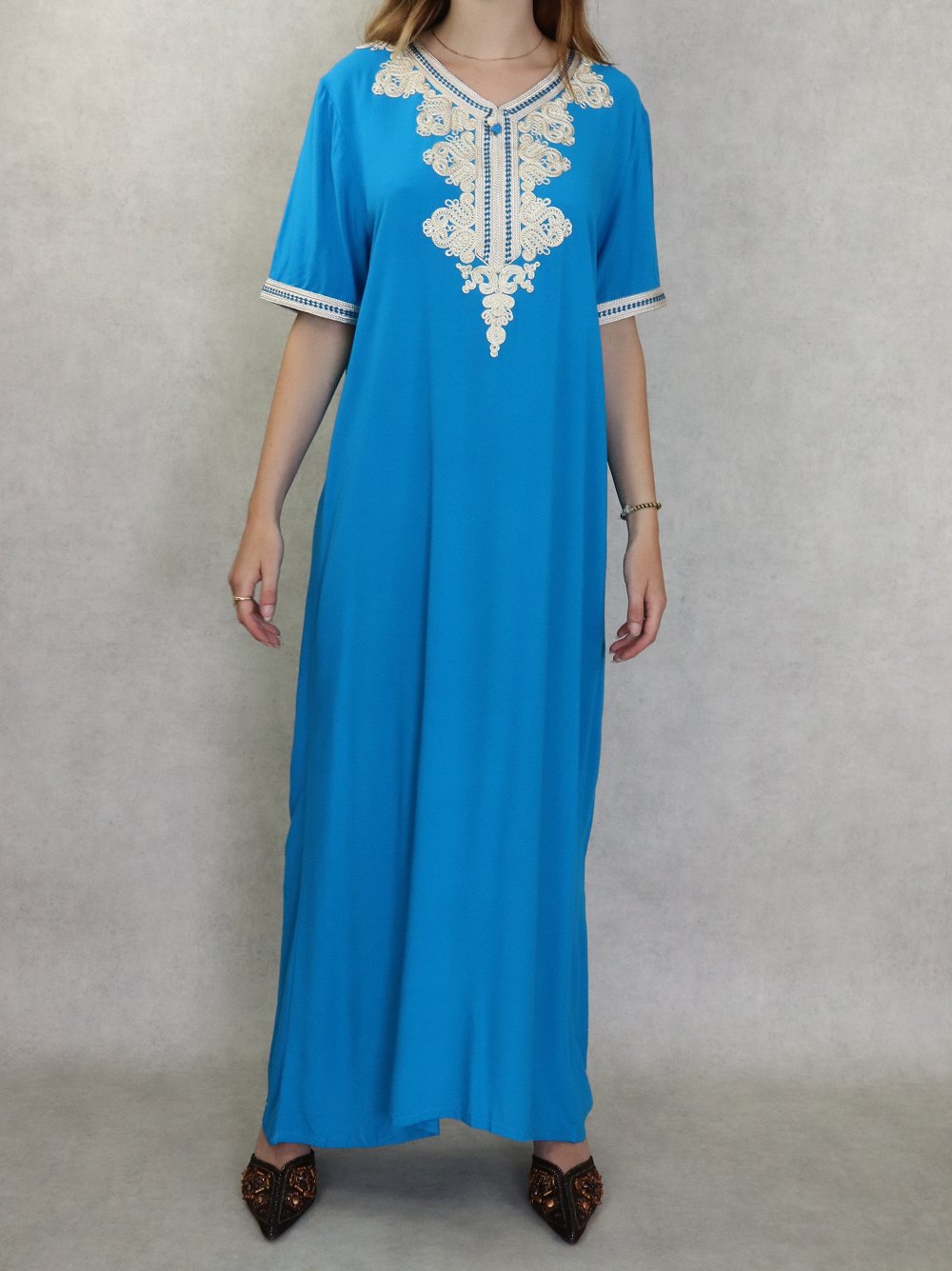 Robe orientale longue brodée manches courtes et décontractée pour femme - Couleur bleu turquoise Vetement & Accessoire
