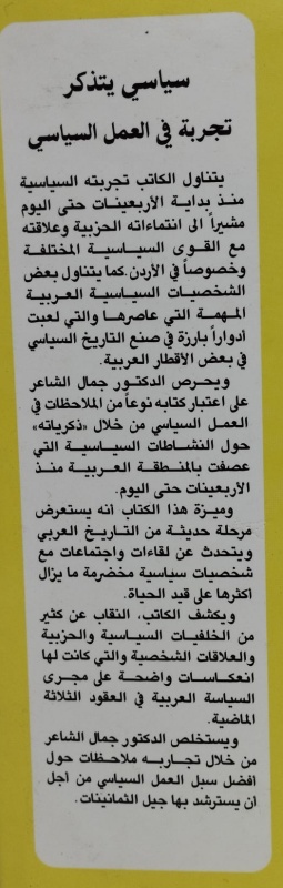يتناول الكاتب تجربته السياسية منذ بداية الأربعينات حتى اليوم، مشيراً إلى انتماءاته الحزبية وعلاقته مع القوى السياسية المختلفة وخصوصاً في الأردن.