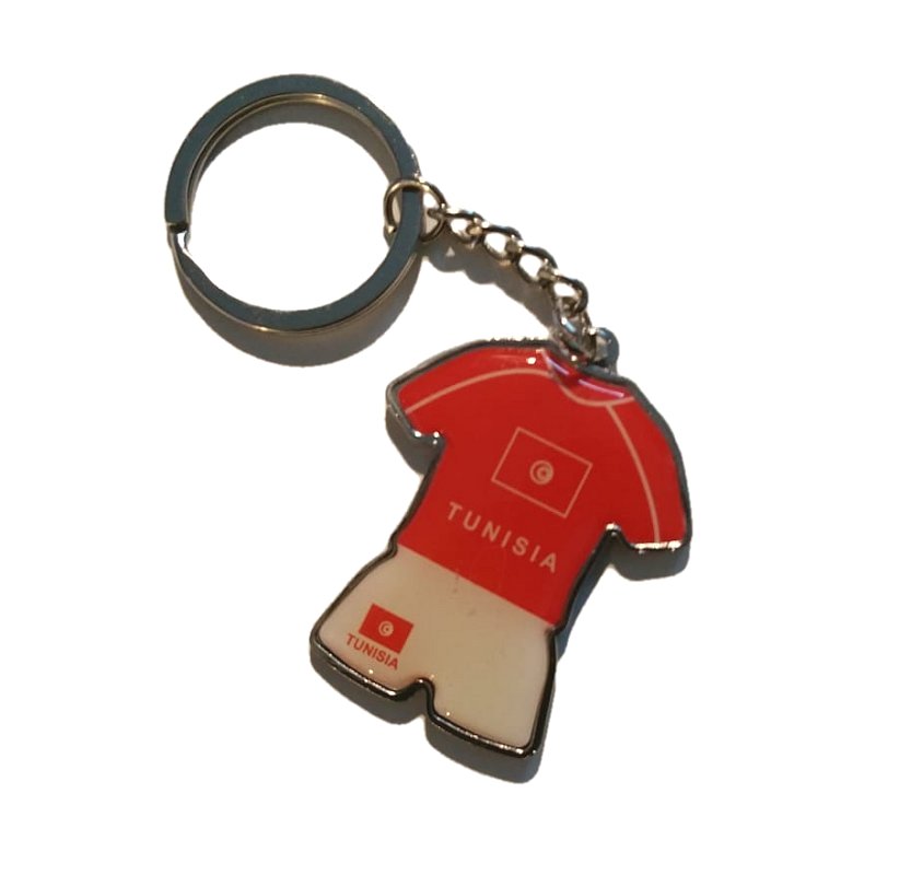 Porte cle metallique sous forme de tenue du foot ball tunisien