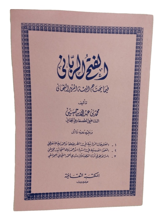 لما رأيت بعض من لا خلاق لهم يعترض على طريقة شيخنا "رضي الله عنه" وأرضاه لجهلهم بمداركه للكتاب والسنة وأقوال الأئمة الهداة ورأيت كتب الطريقة الأحمدية التجانية ذات الفضائل الجمة والمواهب اللدنية يصعب على بعض الإخوان مراجعتها، ويعسر عليهم أخذ أحكام الطريق منه ومعرفتها، حتى إن بعضهم طلب مني جمع كتاب في ذلك، يكون سهل التناول واضح المسالك، شرعت مستعينًا بحول الله وقوته، ومستندًا إلى فضله ومنته في وضع كتاب مشتما على إيضاح ما في طريقة شيخنا ذي الفيوضات الرائقة، وجامع لما طلبه بعض الإخوان من الأوصاف السابقة يكون إن شاء الله بغية المستفيد وجيشًا يحارب كل شيطان مريد مرتبًا له على مقدمة وثمانية أبواب، راجيًا إتمامه من الكريم الفتاح الوهاب: المتقدمة في سبب دخولي الطريقة التجانية، والباب الأول في التعريف بشيخنا ذي الأسرار الإلهية، والباب الثاني في ذكر بعض الأجوبة عما يعترض به على طريقته الغراء، والباب الثالث في ذكر آداب المريد مع نفسه وشيخه وإخوانه وصفة المقدم وما يلزمه التخلق به من الصفات الحسناء، والباب الرابع في ذكر شروط الطريقة الأحمدية، والباب الخامس في ذكر ألفاظ أذكارها اللازمة السنية، والباب السادس في ذكر شرح ألفاظ الوظيفة، ومنه يعلم شرح ألفاظ الورد، والباب السابع في ذكر بعض كرامات شيخنا القطب الفرد، والباب الثامن في ذكر فضل الأذكار اللازمة لطريقه وفضل المتعلقين به "رضي الله عنه" وأرضاه وجعلنا من خاصة أصحابه الأكابر الهداة، وسميته: الفتح الرباني فيما يحتاج إليه المريد التجاني.