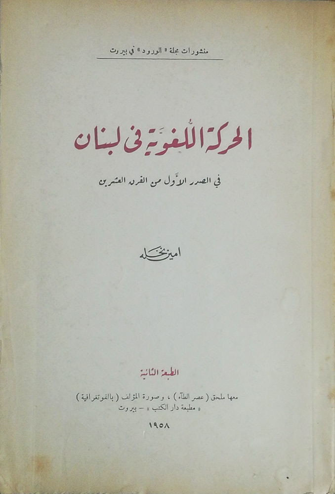 كتاب "الحركة اللغوية في لبنان في الصدر الأول من القرن العشرين" يتناول تاريخ الأدباء واللغويين في لبنان في بداية القرن العشرين الذين ساهموا في وضع مصطلحات عربية في مقابل نظيراتها في اللغات الأوروبية. وهذا الكتاب أصله محاضرة ألقاها مؤلفه أمين نخلة في الندوة اللبنانية ببيروت.
